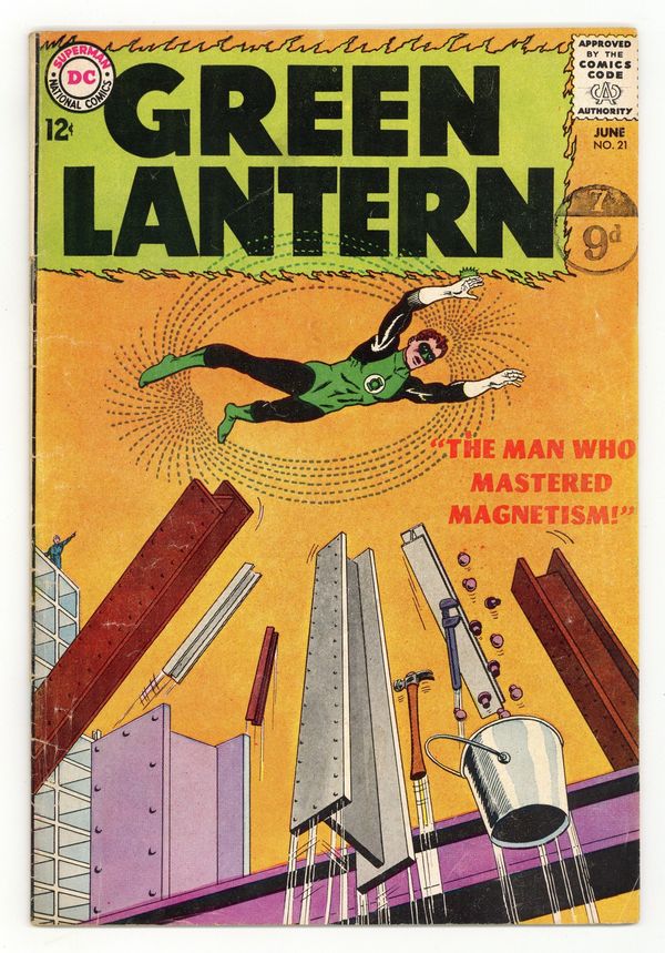 Starts Feb 2 Cover pencils by Gil Kane, inks by Murphy Anderson. The Man Who Mastered Magnetism, script by John Broome, pencils by Gil Kane, inks by Joe Giella; The origin of Dr. Polaris. Hal Jordan Betrays Green Lantern, script by Gardner Fox, pencils by Gil Kane, inks by Murphy Anderson; After helping to catch some art thieves, Carl Ferris begins to suspect Hal Jordan is really Green Lantern. 32 pgs. $0.12. Cover price $0.12. Grade: GD/VG 3.0 explanation of grade Condition: Used (collectible)