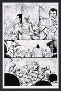 - In a great action page, Icon's attempt to quickly end a war with a display of power and minimal amount of violence is not going great! After taking out four soldiers like it was nothing, Icon stops and asks the other soldiers if they are ready to listen. Rather than heeding his words these soldiers instead decide to dogpile on top of one of the strongest beings on the planet. Great idea guys. Ink over printed pencils on comic art board. 11" X 17".
