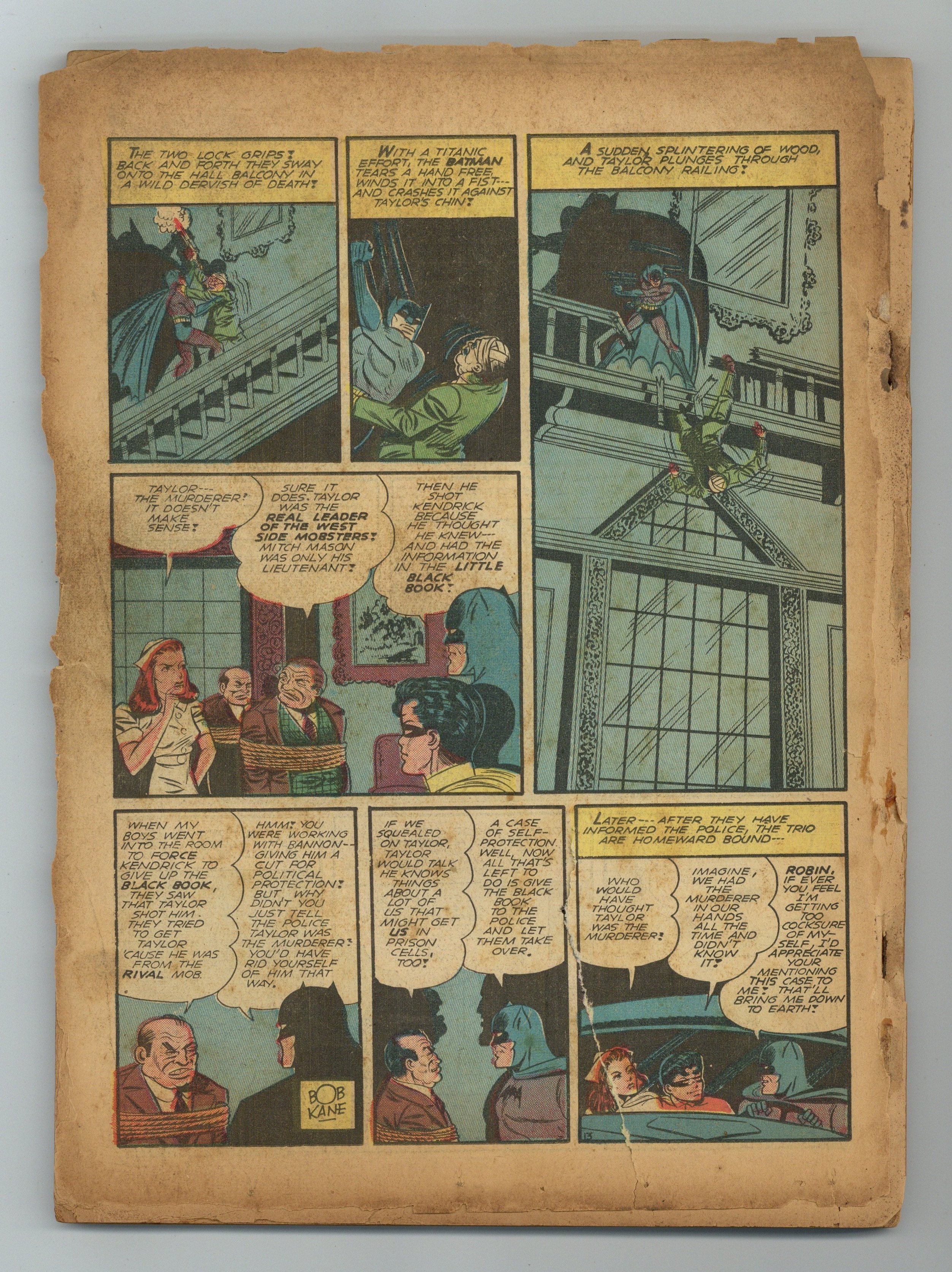 Cover art by Fred Ray. The Unknown X, script by Jerry Siegel (signed), pencils by Paul Cassidy [as Joe Shuster]; Superman must find out the identity of the mysterious gang leader known as the Unknown X who has organized one of the most thorough criminal organizations Metropolis has ever seen. Repelling the Invaders starring Red, White and Blue, art by Harry Lampert. Mystery of the Night Club Robberies starring The Crimson Avenger, script and art by Jack Lehti. Johnny in the Army, script by John B. Wentworth, art by Stan Aschmeier. Errand of Mercy starring Young Doc Davis, script and art by Henry Boltinoff. The Tornado Mystery starring Zatara, script by Gardner F. Fox, art by Joseph Sulman. The Adventure of the French Quarter starring The King, script by Gardner F. Fox, art by Harry Lampert. Poison Flowers starring Punch Parker. Mystery at the Circus starring Lando, Man of Magic, art by Howard Purcell. The Man Who Couldn't Remember! starring Batman and Robin, script by Bill Finger, pencils by Bob Kane, inks by Bob Kane and George Roussos (backgrounds). 100 pages, Full Color. Cover price $0.15. Grade: Coverless explanation of grade Condition: Used (collectible)