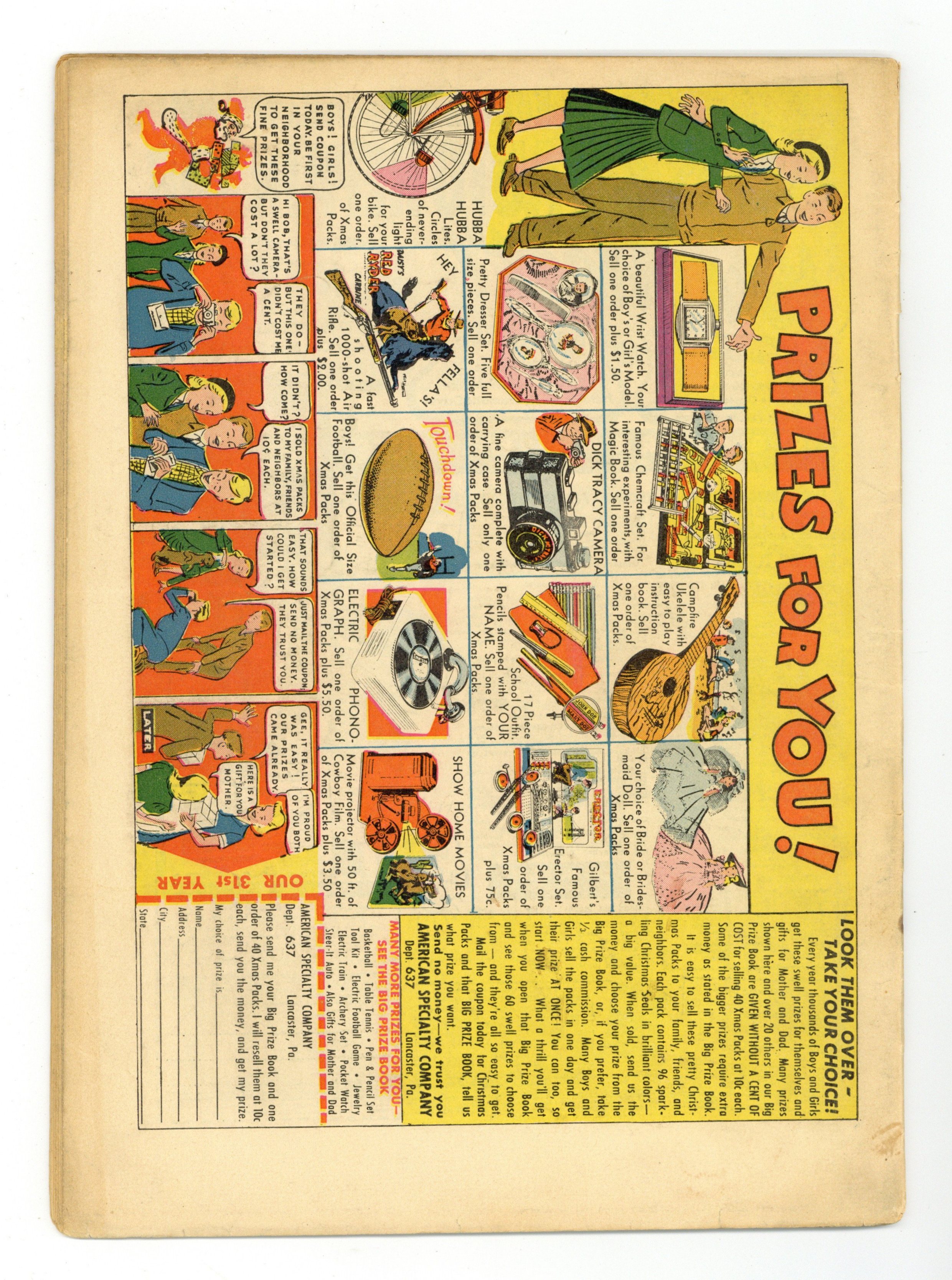 Starts Feb 2 Cover by L. B. Cole. Stories and art by Nina Albright and Al McWilliams. Sometimes listed as Criminals on the Run Vol. 05 #3. Bespectacled, eccentric detective "King" Cole Jr. takes over his father's detective agency. Young King Cole investigates the arsonist who is causing forest fires. Sergeant Spook and Jerry try to prove that a corrupt mayor is swindling the city over a playground for impoverished kids. A reprint of the first adventure of goatee'd criminologist Doctor Doom (no relation to Victor), as he and his students investigate deadly accidents at a skyscraper. Final issue under this title; series continues as Crime-Fighting Detective (1950) #11. Young King Cole; Criminal Lawyer's Medicine; Sergeant Spook; Dr. Doom. 32 pages, Full Color. Cover price $0.10. Grade: GD/VG 3.0 explanation of grade Condition: Used (collectible)