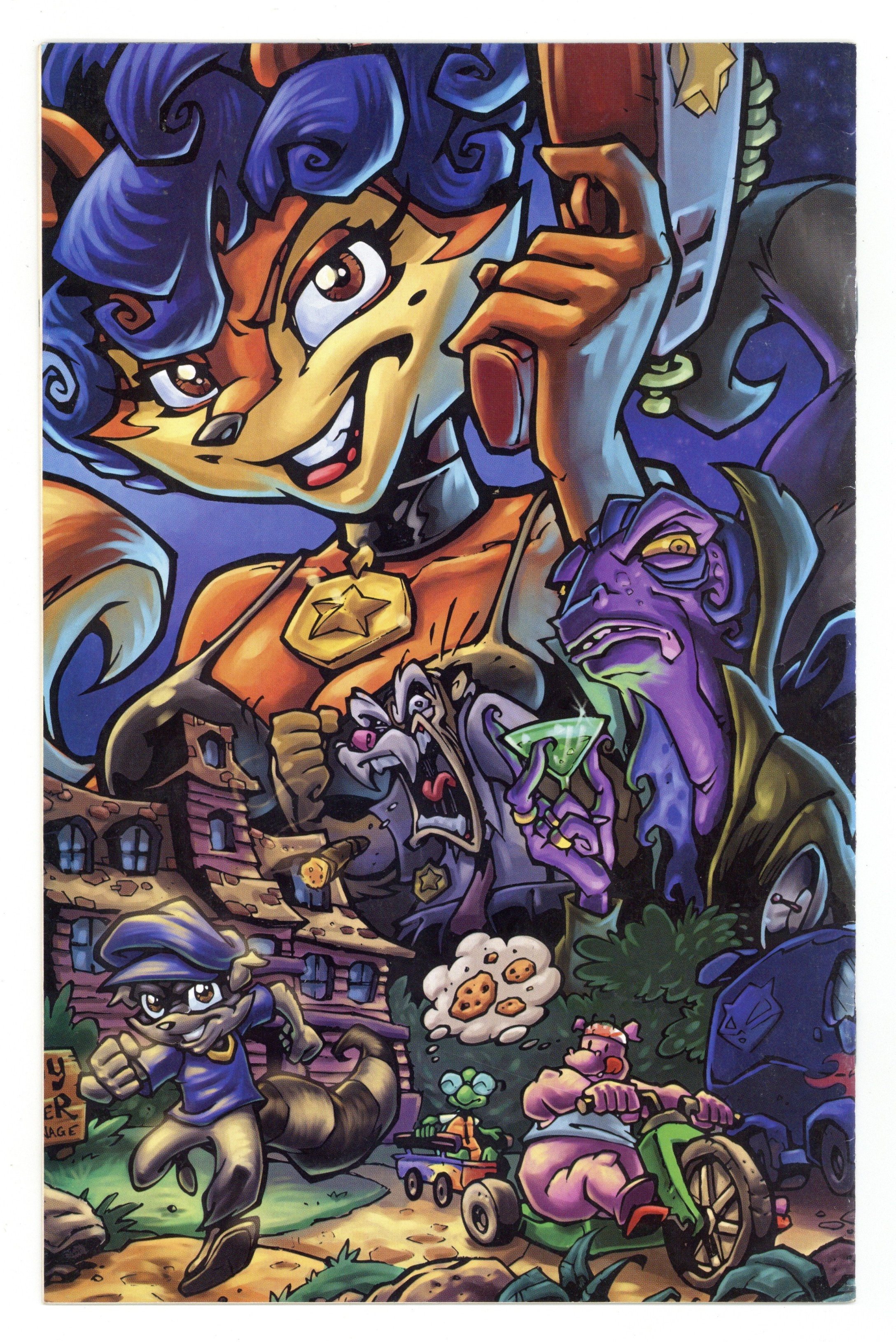 Starts Feb 9 No # on cover, no indicia. A promotional comic given out at the Sony booth during Wizard World 2004 to promote Sly 2: Band of Thieves. Acting as an in between story between the first and second game, apparently taking place sometime within the 2 year span between them. Murray and Bentley still appear as they did in Sly 1, Murray showing his more carefree demeanor from the first game showing no sign of his more hands on "The Murray" persona that he adopts during the second game and on. Considering Murray's surprise entrance at the beginning of the second game, it is assumed that this was done to keep it a surprise. Sly however, despite still looking quite young in comparison to later on, wears his thief bag around his leg as he does in Sly 2. The plot consists of two flashback stories. One is a flashback to the Cooper gang's first taste of thief work as children at the Happy Camper Orphanage (stealing cookies from a greedy sitter), and the other detailing the first time Carmelita and Sly met... which the two relay to each other with opposing points of view during a rare peaceful conversation with each other. After all is said and done, Sly once again escapes Carmelita's grasp by seemingly jumping into the nearby canal. Carmelita is at first very worried that she may have made Sly do something dramatic... but to her chagrin sees that Sly had in fact jumped onto a boat also accompanied by the gang. As the three float down the river, Sly knows he will see Carmelita again soon. Of interesting note is that Dimitri from Sly 2 and 3 makes a cameo appearance, and is drawn in the comic style of the first game as opposed to the more streamlined style the characters are drawn in from here on out. Note that Carmelita swears in this issue. Grade: VG 4.0 explanation of grade Condition: Used (collectible)