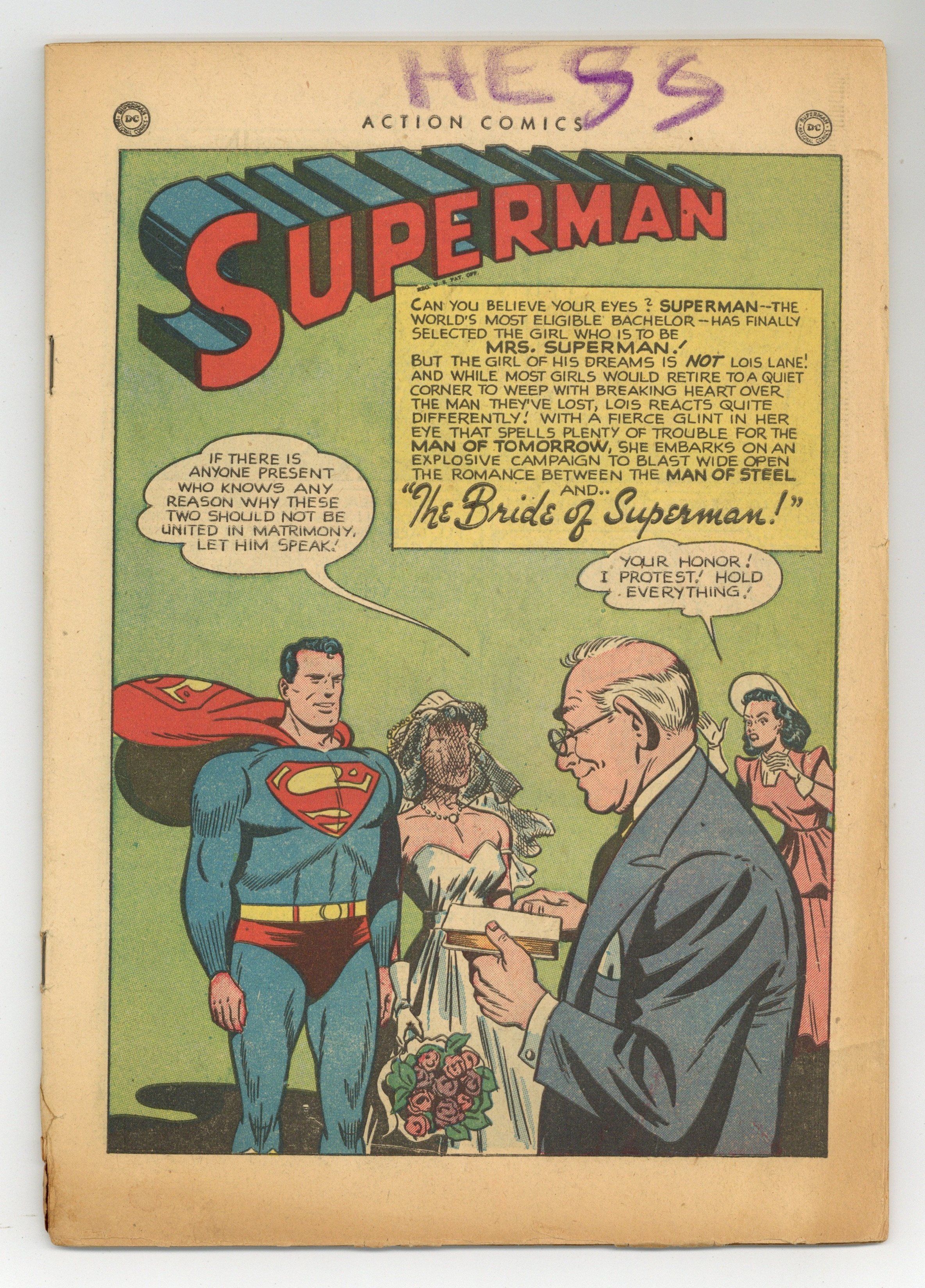 Cover art by Al Plastino. The Bride of Superman, script by Bill Woolfolk, art by Al Plastino. The Treasure in the Atom starring Tommy Tomorrow, script by Otto Binder, pencils by Curt Swan, inks by John Fischetti. The Perfect Specimen starring Congo Bill, script by Otto Binder, art by Ed Smalle. The Days of '49 starring Vigilante, script by Gardner Fox, art by Dan Barry. Superman's Code for Buddies public service announcement, script by Jack Schiff, art by Al Plastino. 52 Pages, Full Color. $.10 Cover price $0.10. Grade: Coverless explanation of grade Condition: Used (collectible)