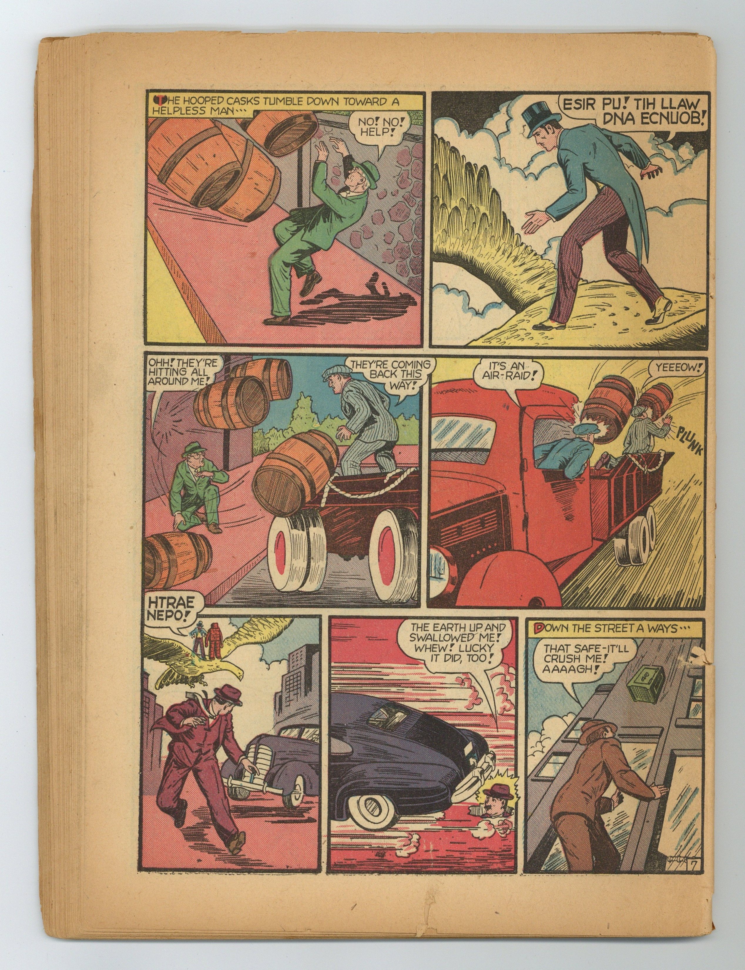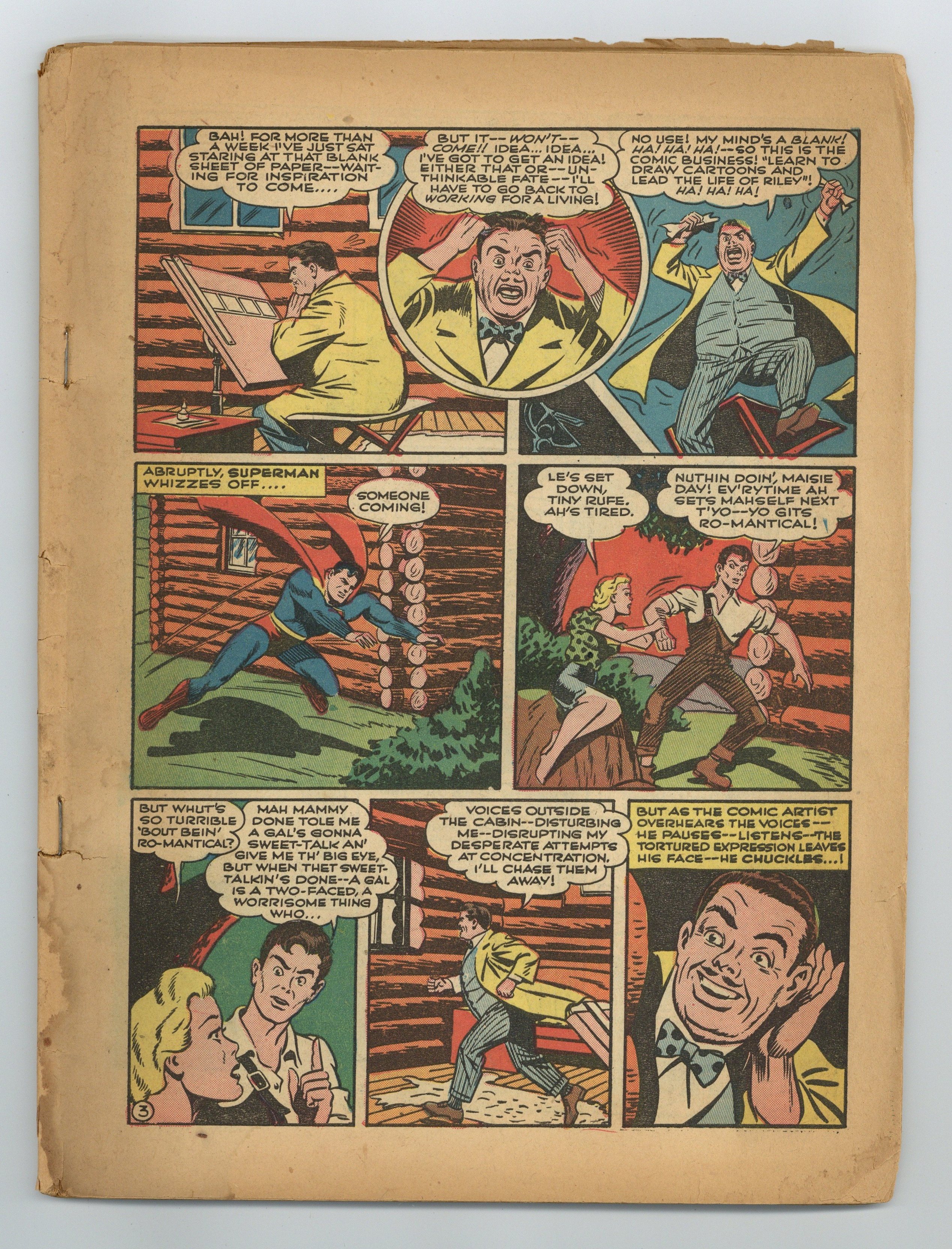 Cover art by Jack Burnley. A Goof Named Tiny Rufe starring Superman, script by Jerry Siegel, pencils by John Sikela (signed as Joe Shuster), inks by Ed Dobrotka. Bullets for Breakfast starring Vigilante, pencils by Mort Meskin (as Mort Morton Jr.), inks by George Roussos. Aces of Fire starring Three Aces, script by Gardner F. Fox, art by Louis Cazeneuve. Escape from the Scaffold starring Americommandos, script by Joseph Greene, art by Bernard Baily. A Modern Robinson Crusoe starring Congo Bill. Crimes by Coincidence starring Zatara, art by Joseph Sulman. 68 Pages, Full Color. $.10 Cover price $0.10. Grade: Coverless explanation of grade Condition: Used (collectible)