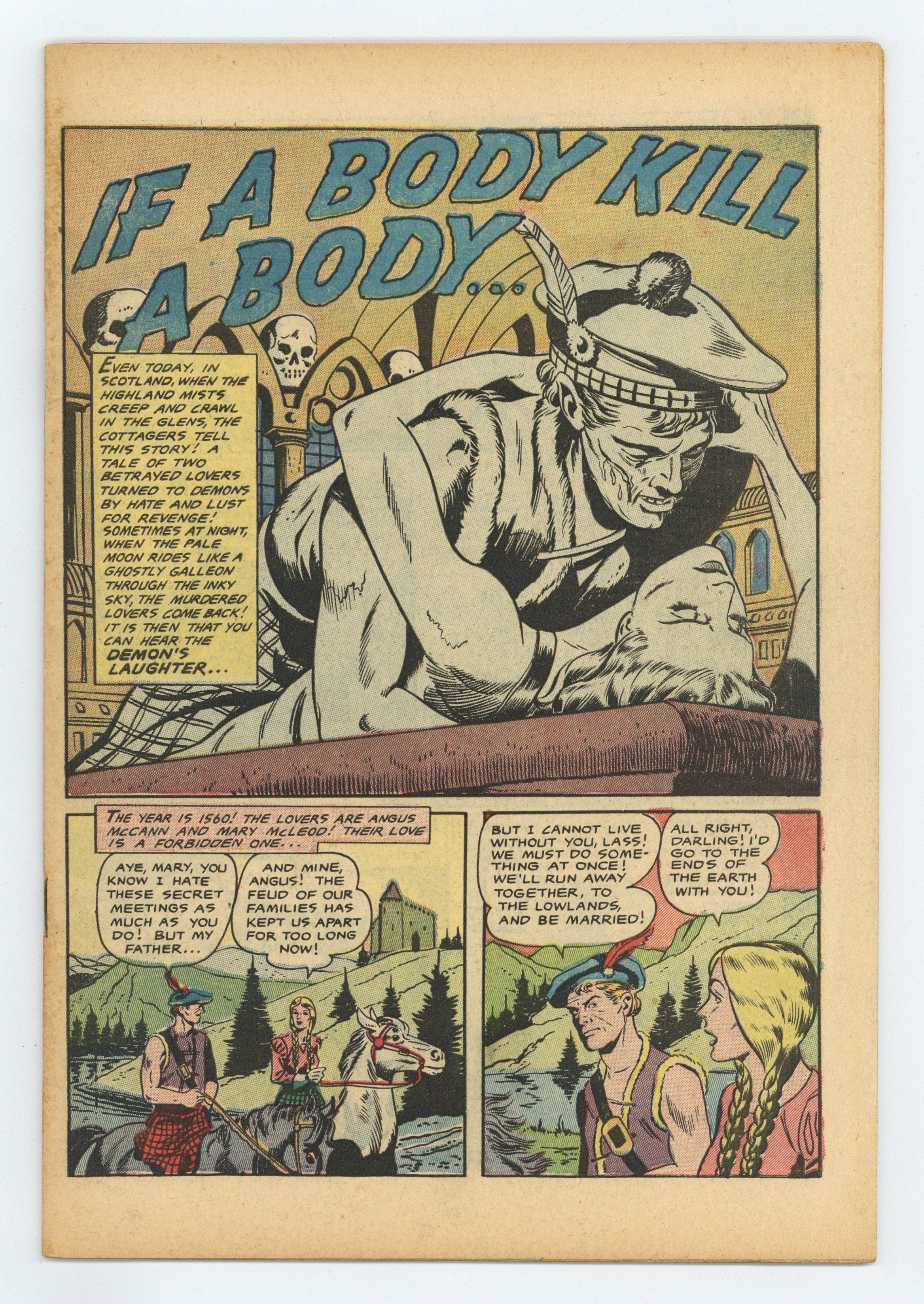 Stories and art by Robert Webb and others. Pre-Code tales of horror and the supernatural from Ajax-Farrell. Nerdy Wilbur gets the power to make his dreams come true, and he doesn't even know it. The descendant of the iron maiden's inventor is haunted by the torture device's victims. A woman is possessed by the spirit of a witch after relocating to Salem, Massachusetts. If a Body Kill a Body; Deadly Wish; Secret Coffin; Broom for a Witch. Final issue under this title; numbering continues with Fantastic Comics (1954 Ajax) #10. 32 pages, Full Color. Cover price $0.10. Grade: Coverless explanation of grade Condition: Used (collectible)