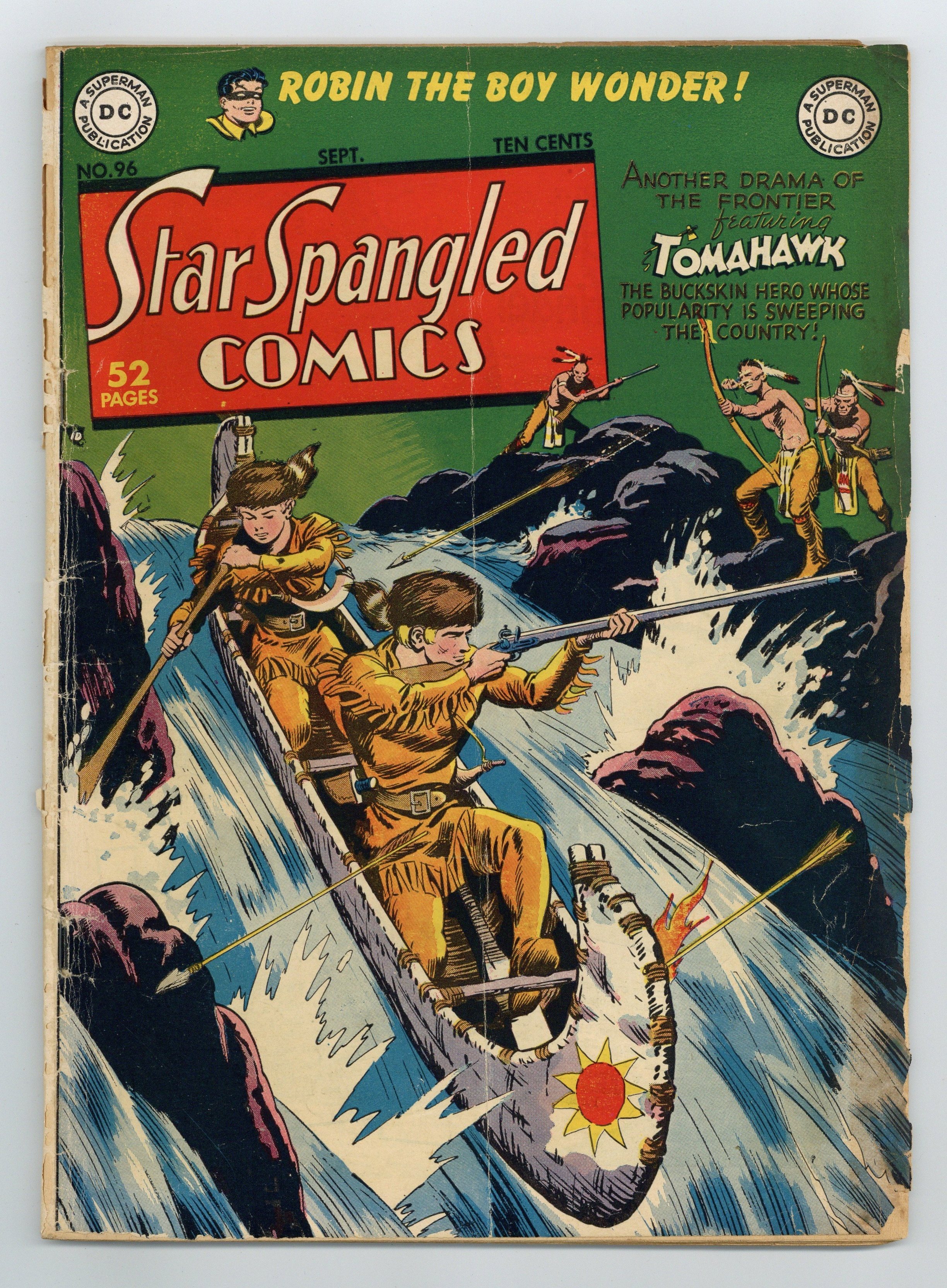Robin in "The Boy Who Could Invent Miracles" (Batman Cameo), Tomahawk in "The Drums of the Dead," Captain Compass in "Port of the Past," Dover and Clover in "The Disappearing Ducks," Manhunters in "Watchdogs With Wings" (pencils by Curt Swan?). Cover price $0.10. Grade: FR 1.0 explanation of grade Condition: Used (collectible)