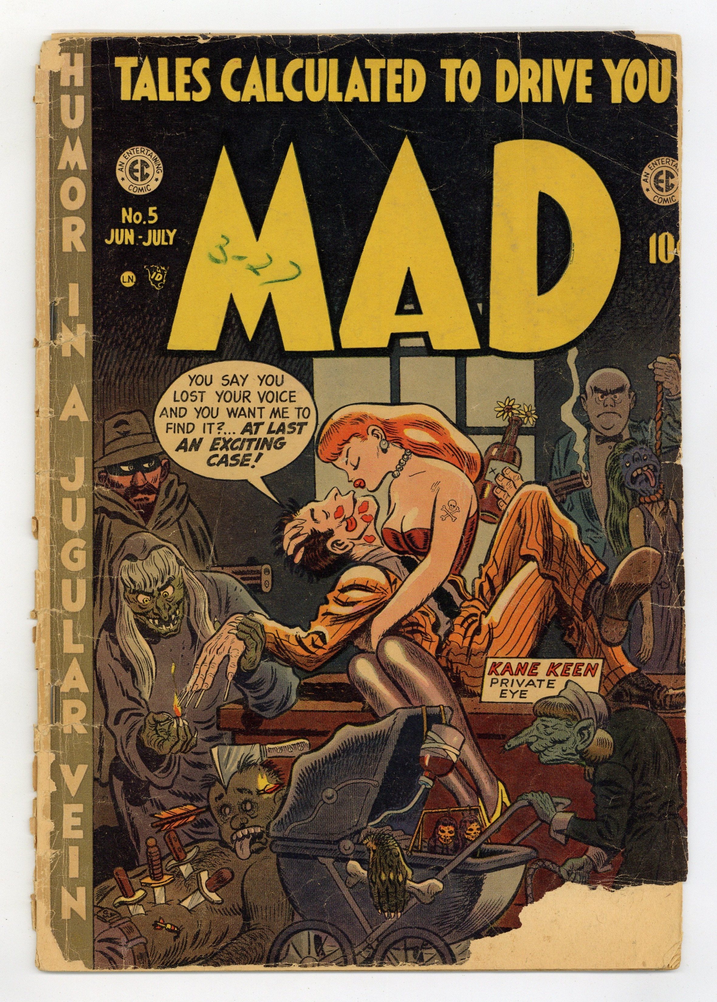 Starts Apr 4 Low distribution. Cover by Bill Elder. The EC "Publisher of The Issue"; A fake biography of William M. Gaines. "Outer Sanctum!", art by Bill Elder; The Professor creates Heap and uses him to rob banks until Heap leaves to find a mate. "Black And Blue Hawks!", art by Wally Wood (as Woodhawk); The Black And Blue Hawks stage a mutiny; Blackhawks parody. E.C. comics ad. "Miltie of The Mounties!", art by John Severin; Miltie the Mountie doesn't get his man. "Kane Keen! Private Eye," art by Jack Davis; Kane finds the murderer: the butler did it. One-page William Gaines biography. 36 pgs., full color. $0.10. Cover price $0.10. Grade: GD- 1.8 explanation of grade Condition: Used (collectible)
