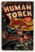 Cover art by Carl Burgos. Vampire Tale starring the Human Torch, art by Dick Ayers; Torch and Toro encounter alien bat people who explain that vampires are their criminals that they exiled to Earth long ago when there was no intelligent life; A scout ship having informed them that there is now an intelligent species on the planet being preyed on by the vampire aliens, the bat people are now rounding up vampires to deposit on some other planet without an intelligent species since they do not believe in killing. A Spy There Was starring the Human Torch, art by Dick Ayers. Ghost Lights text story. The Underwater People starring Sub-Mariner, script and art by Bill Everett. The Menace of the Unhuman starring the Human Torch, art by Dick Ayers. $0.10. Cover price $0.10. Grade: PR 0.5 explanation of grade Condition: Used (collectible)