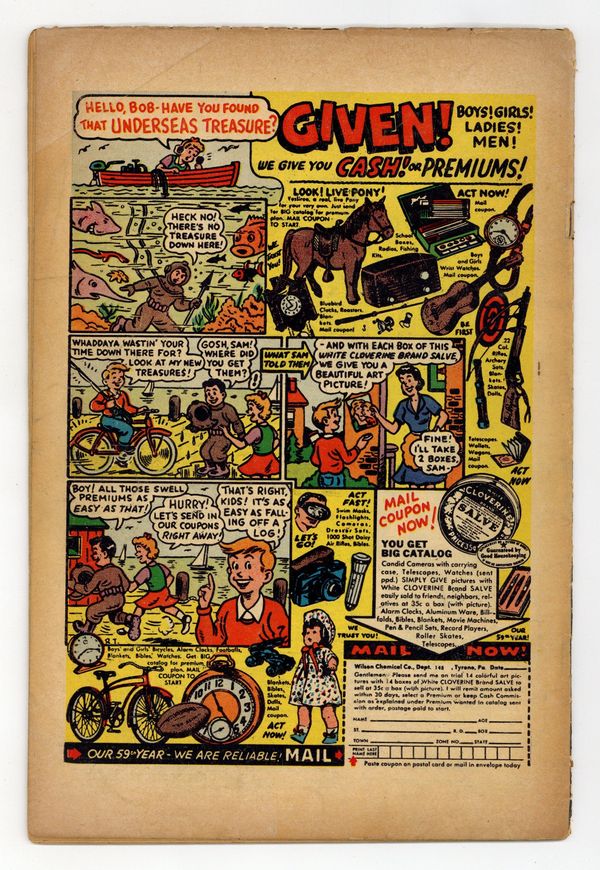 Tags: Sub-MarinerPublished Jun 1954 by Timely/Marvel.$300.00- INCOMPLETE. 2 Ad pages missing, does not interrupt art or story. Cover oxidation.