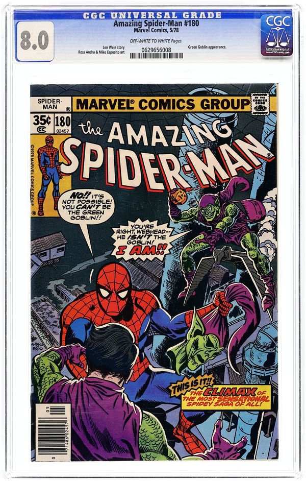 Tags: Marvel Legacy Numbering: Amazing Spider-Man (part 180), Spider-ManAmazing Spider-Man (1963 1st Series) 180 CGC 8.0