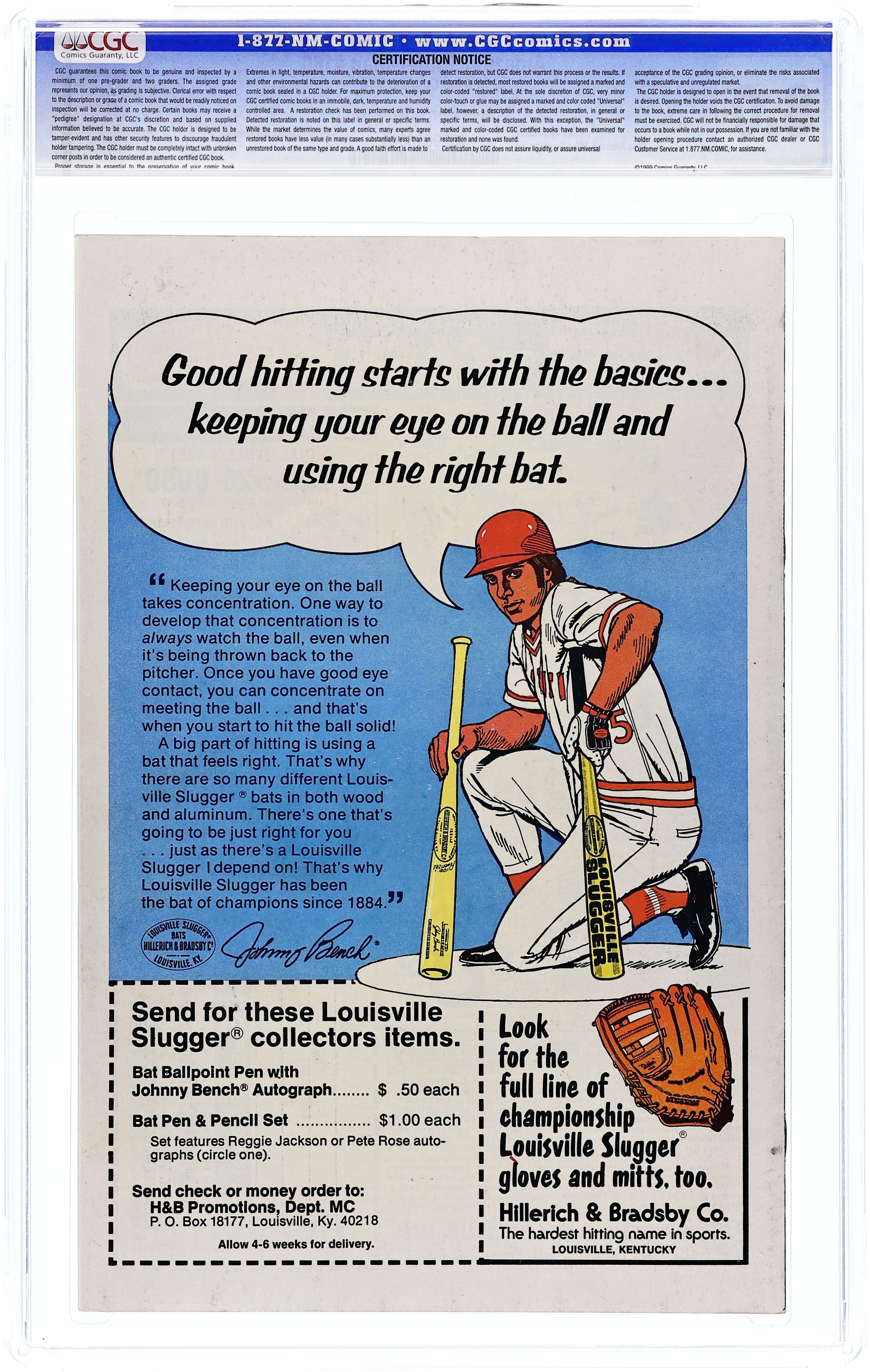 Starts Feb 23 "Who Was That Goblin I Saw You With?" Part 5 of 5. Script by Len Wein. Art by Ross Andru (breakdowns) and Mike Esposito (finishes). Cover by Ross Andru and Mike Esposito. This is it! The awesome conclusion to the five-part goblin saga! At Radio City Music Hall, the Green Goblin emerges triumphant! And the devious purple and green villain flies to an incinerating plant in Brooklyn to throw the unconscious web-slinger into a smokestack! But the spectacular one wakes up just in time! And the final donnybrook between the Green Goblin and the Amazing Spider-Man begins! The wall-crawler is in control of the battle...until a second goblin arrives on the scene! What?! Who? The web-slinger watches in shock as the battle of the goblins unfolds! Can Harry Osborn exorcise the demons of his past? And somehow return to a normal life? An uplifting story! Final appearance of Dr. Bart Hamilton. Cameo appearances by Silvermane, J. Jonah Jameson, Joe Robertson, and Liz Allan. Flashback cameos by Harry Osborn and the Spider-clone. (Notes: More than a decade passes before Harry Osborn becomes the Green Goblin again in Amazing Spider-Man 312. The incinerating plant in this story is the same one where the web-slinger disposed of his clone in Amazing Spider-Man 151. Silvermane returns in Spectacular Spider-Man Annual 2. This issue concludes Len Wein's terrific two-and-a-half year run as the writer of the Amazing Spider-Man title.) 32 pages. Cover price $0.35. Grade: CGC 8.0 explanation of grade Condition: Used (collectible)