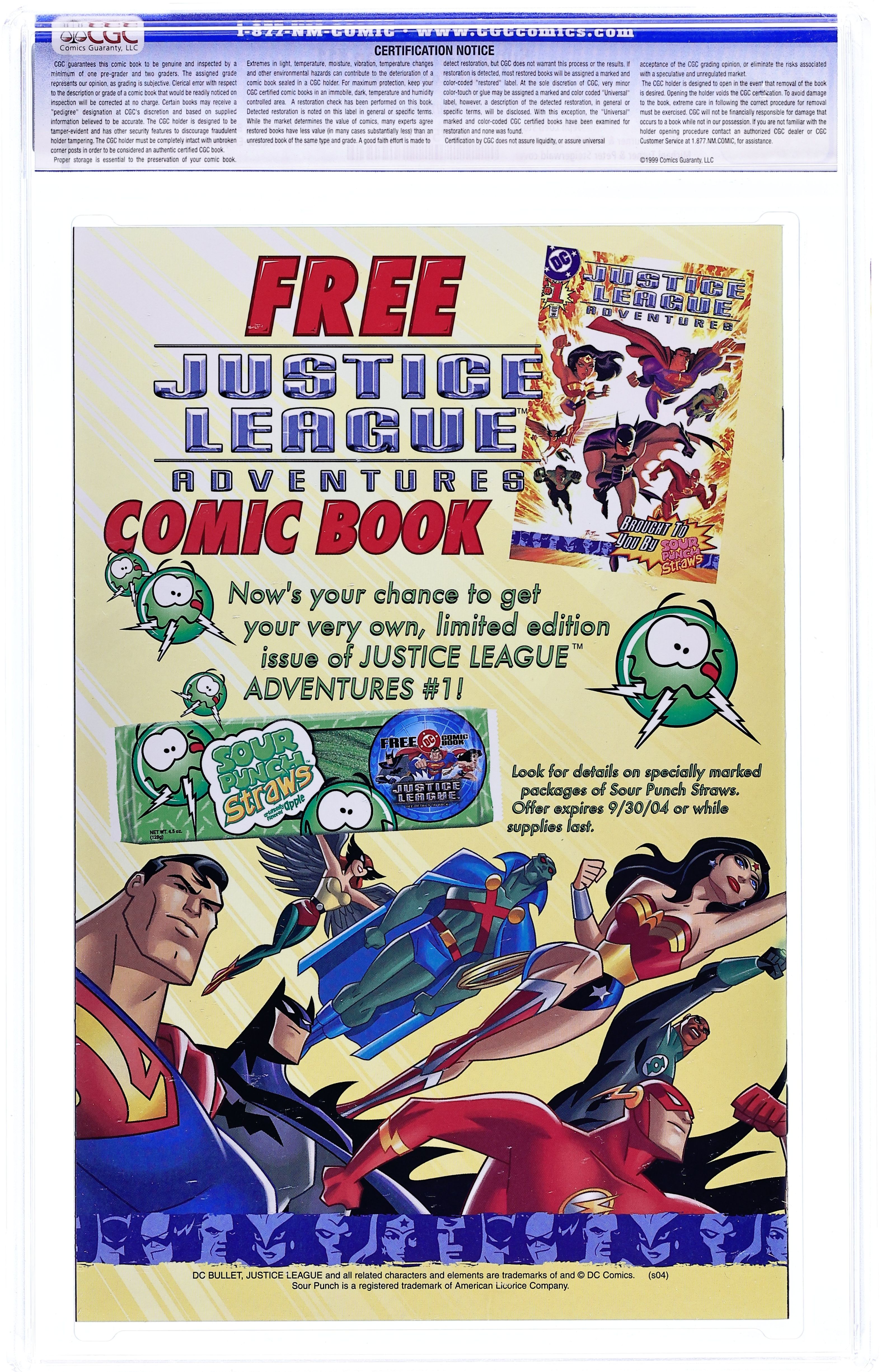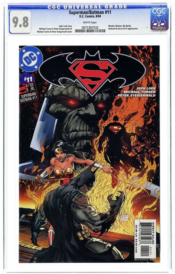 Starts Feb 23 WRITTEN BY JEPH LOEB; ART AND COVER BY MICHAEL TURNER "The Supergirl From Krypton'" part 4 of 6. by Jeph Loeb & Michael Turner continues! Superman, Batman and Wonder Woman travel to Apokolips to rescue Kara. But does she want to be rescued? For more information, see the feature article. See this month's Dynamic Forces listings for a signed version! FC, 32 PG. $2.95 Cover price $2.95. Grade: CGC 9.8 explanation of grade Condition: Used (collectible)