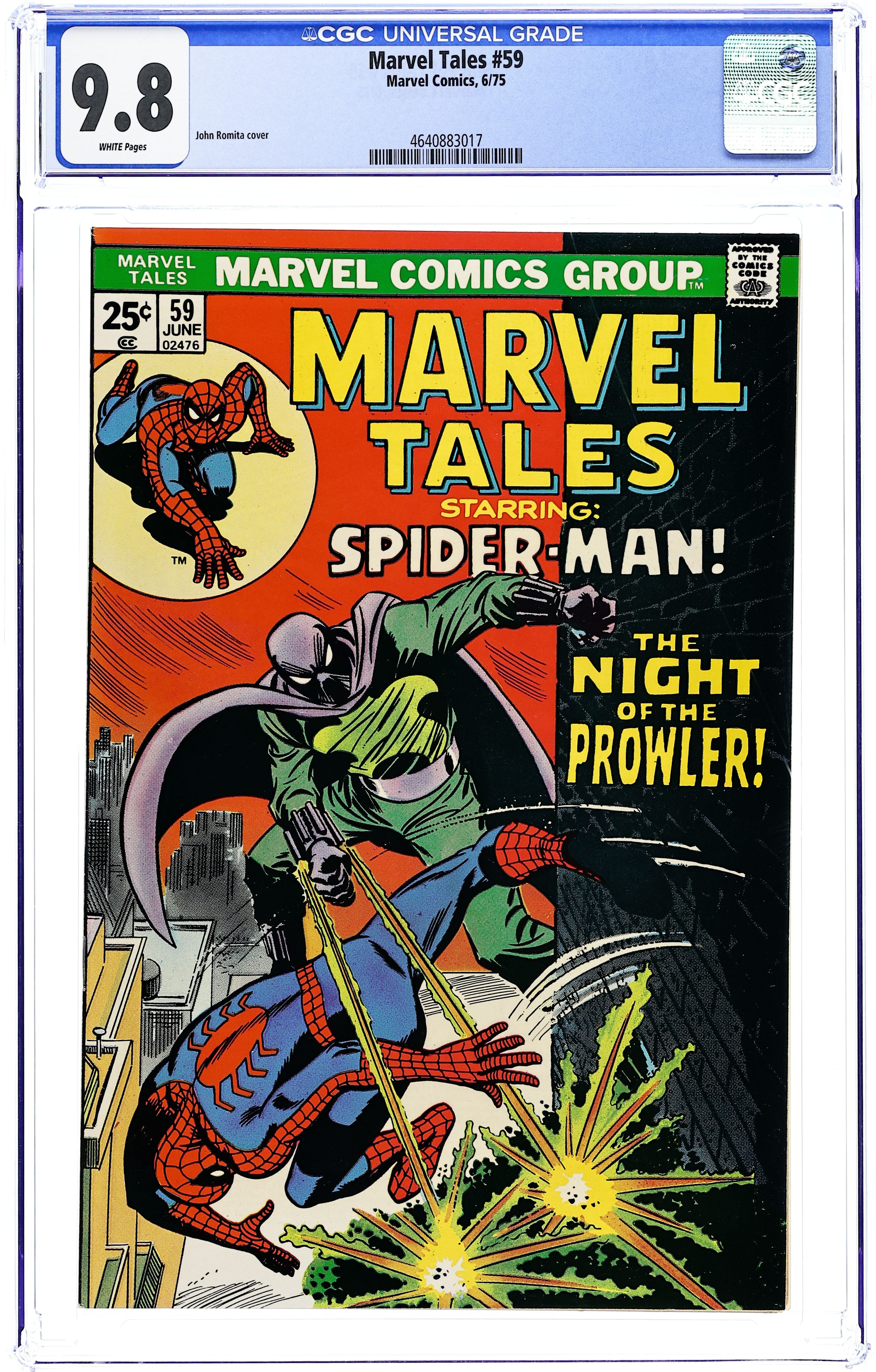 Reprints Amazing Spider-Man # 78. First appearance of The Prowler in "Night of the Prowler!" Story by Stan Lee and John Romita Sr.; breakdowns by John Buscema, art by Jim Mooney. Spider-Man stars in a one-page Hostess ad, "The Trap." Romita cover. Cover price $0.25. Grade: CGC 9.8 explanation of grade Condition: Used (collectible)