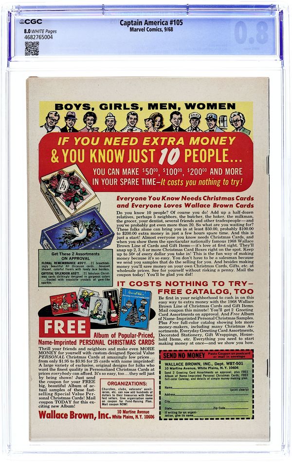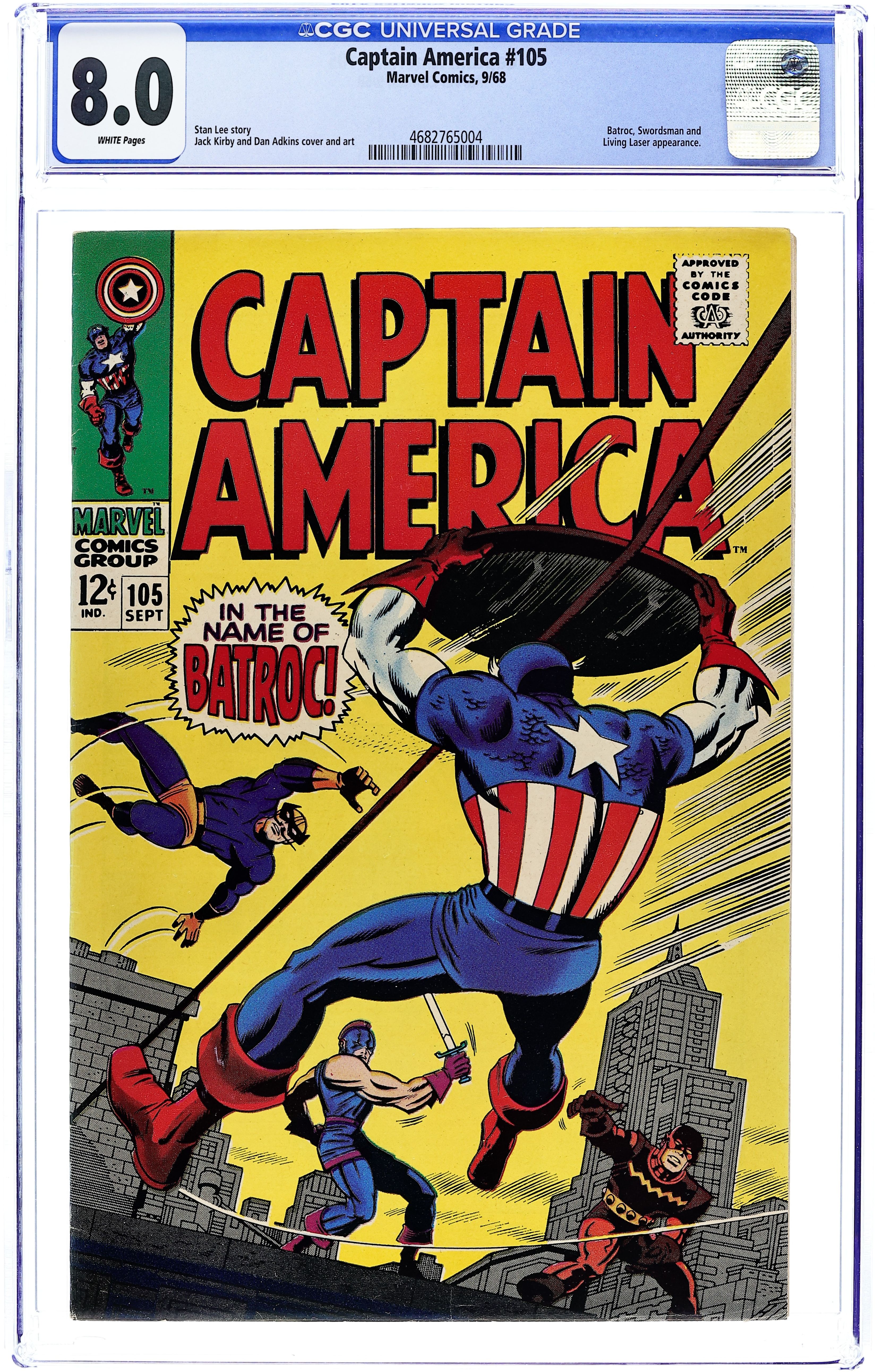 Tags: Marvel Legacy Numbering: Captain America (part 105), Captain AmericaCaptain America (1968 1st Series) 105 CGC 8.0