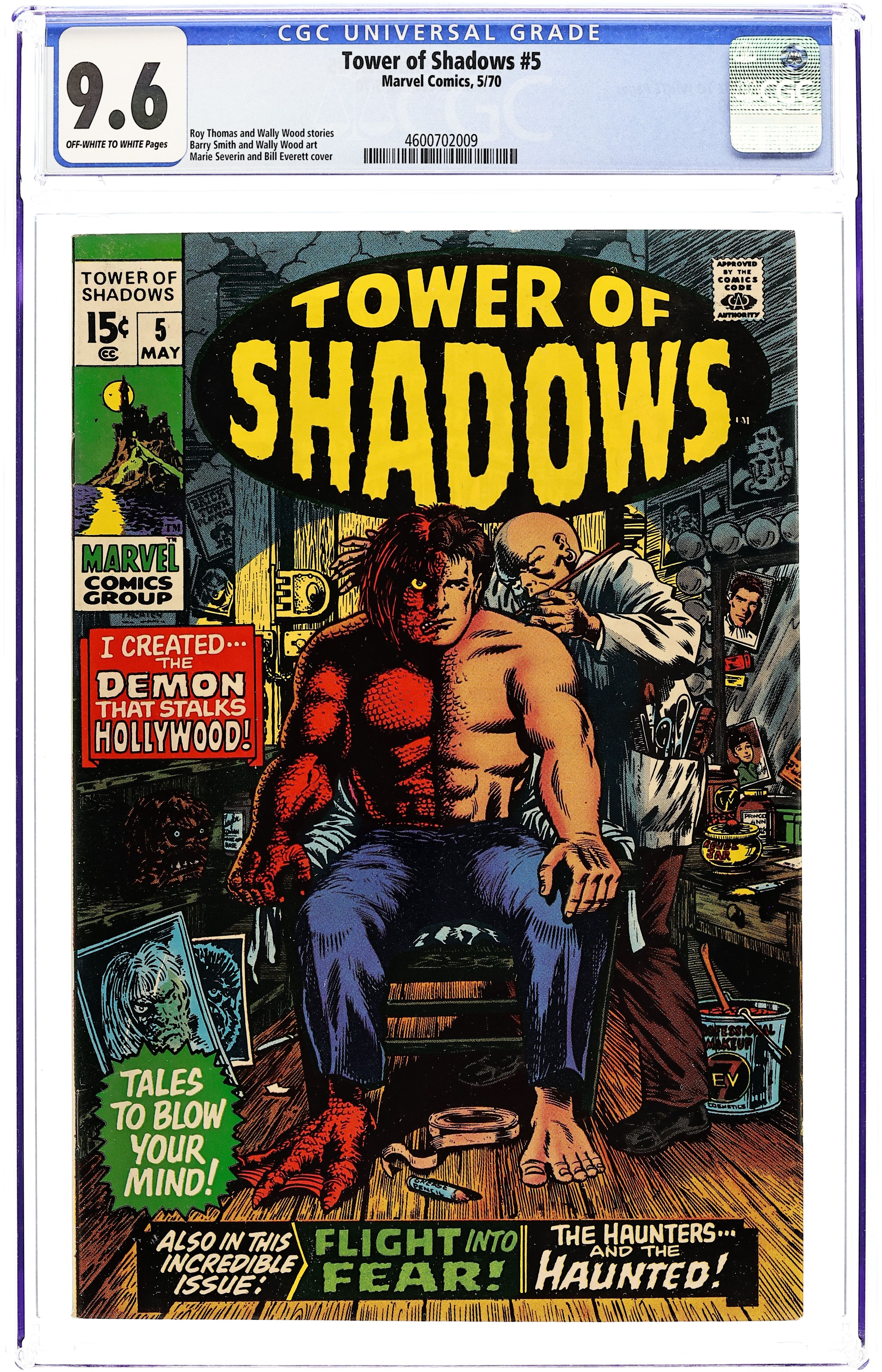Starts Apr 4 All new stories. "The Demon That Devoured Hollywood!" Script by Roy Thomas, pencils by Barry Windsor-Smith, inks by Dan Adkins. "Flight Into Fear!" Script and art by Wally Wood. "Time Out!" Script by Gerry Conway, art by Syd Shores. All three stories contain artist self-portraits. Marie Severin cover. Cover price $0.15. Grade: CGC 9.6 explanation of grade Condition: Used (collectible)