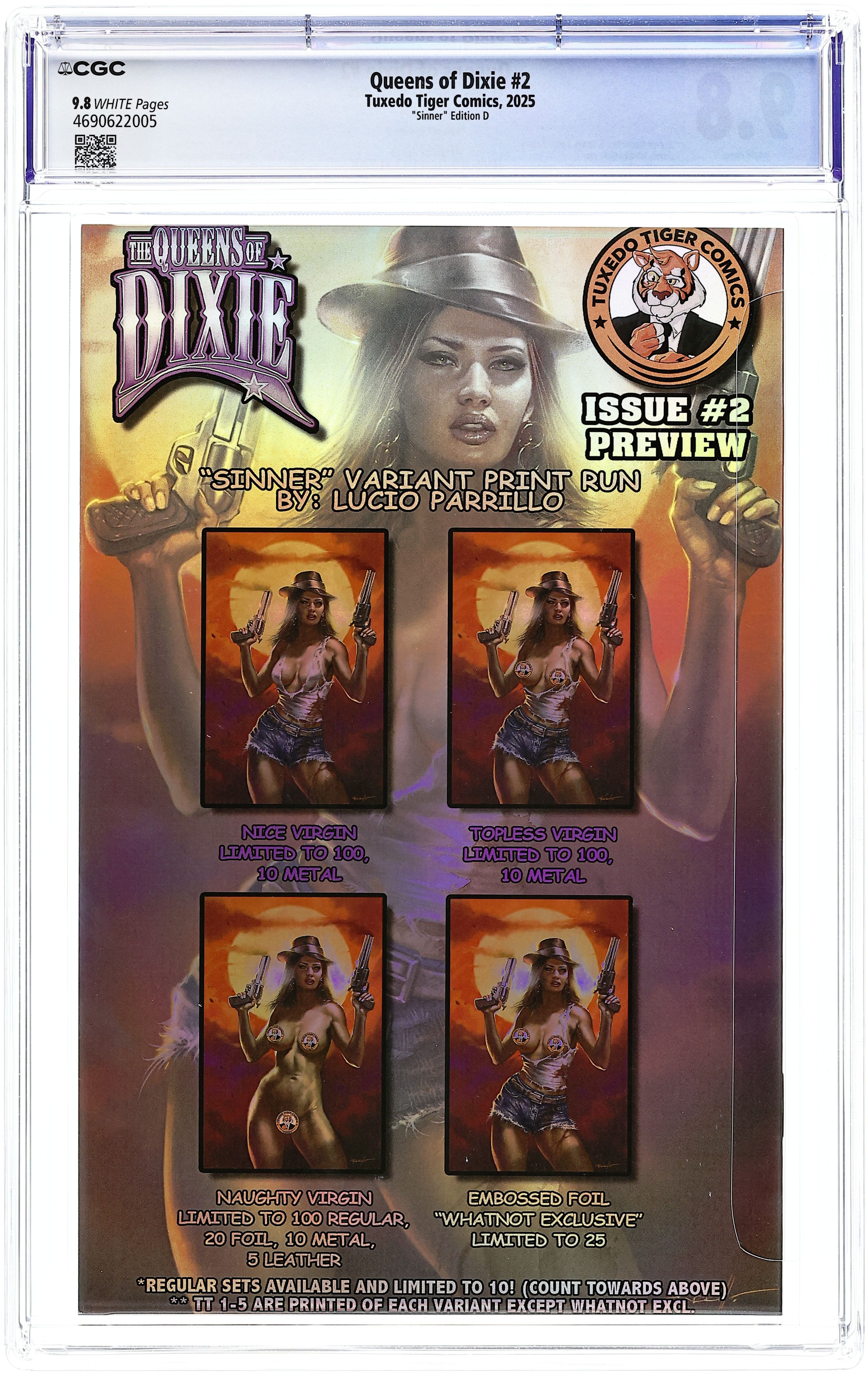 Published 2025 by Tuxedo Tiger Comics.Queens of Dixie (2024 Tuxedo Tiger) Preview 2SINNER.D CGC 9.8