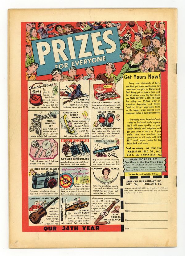 Cover art by Al Feldstein. "The Two-Century Journey!", script by Al Feldstein (script and plot) and William Gaines (plot), art by Wally Wood; A generation ship leaves earth to travel to another planet; On the way they discover that people age very slowly in space, which creates a population problem on the ship. "Shrinking From Abuse!", script by Bill Gaines (co-plot) and Al Feldstein (co-plot, script), art by Jack Kamen; Hugo Masterson has created a formula to shrink tissue in order to possibly cure cancer, but he accidentally injects himself and is then injested by his wife. Shock SuspenStories ad. "Desire!" text story. "The 10th At Noon," script by Al Feldstein (script and plot) and William Gaines (plot), art by Wally Wood; Two scientists invent a time machine that can send a camera into the future and snap a picture, and, by doing so, they discover the end of the world is coming. "The Thing In the Jar," script by Al Feldstein, art by Joe Orlando; Scientists discover what has been killing everything in Mr. Dorsey's pond. 36 pgs., full color. Cover price $0.10. Grade: VG+ 4.5 explanation of grade Condition: Used (collectible)