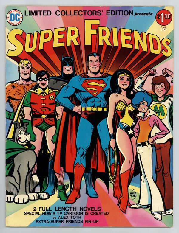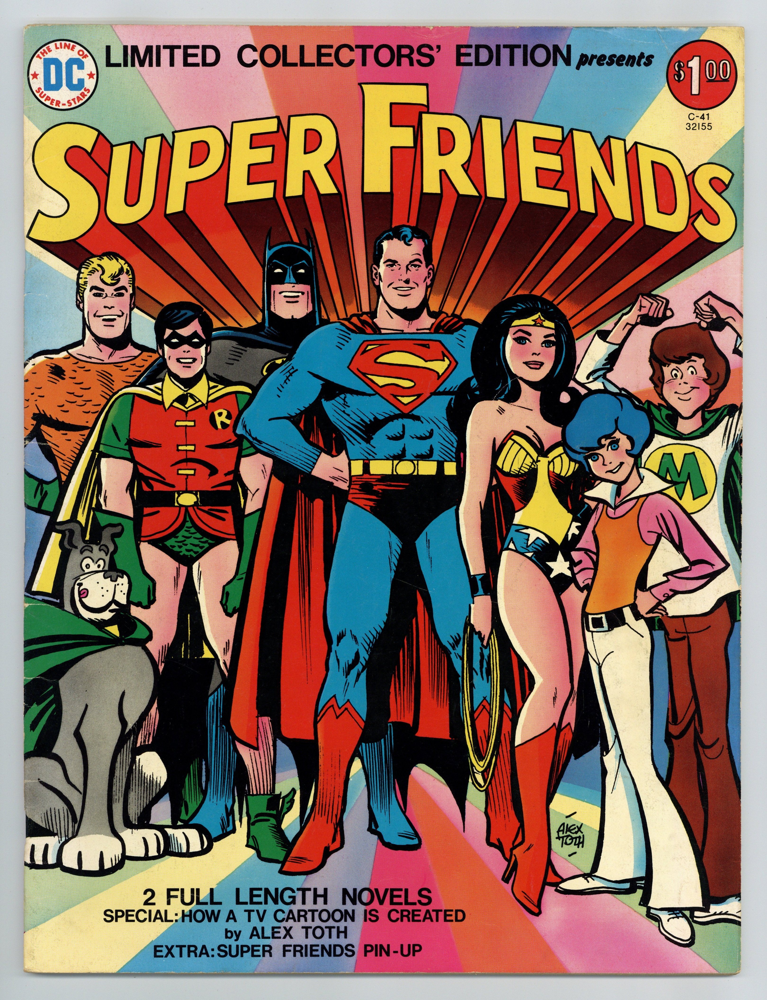 Ends Mar 30 9:36 PM CST Bid History 7 bids Current Bid $16 Your Secret Max Bid If you'd like to bid, please log in or register. Limited Collectors' Edition: Super Friends. 6 pages new Alex Toth art, plus 11-page Toth essay about animation art. Toth front and back covers. Justice League of America reprint. Operation: Jail the Justice, story by Gardner Fox, art by Mike Sekowsky and Sid Greene; Who is the arch-criminal who puts the JLAers behind bars by making them look like their greatest foes? The Case of the Disabled Justice League, story by Gardner Fox, art by Mike Sekowsky and Bernard Sachs. 64 pgs. Treasury-sized. Size is 10 x 13-1/2" (about the size of a Life magazine). Cover price $1.00. Cover price $1.00. Grade: VG 4.0 explanation of grade Condition: Used (collectible)