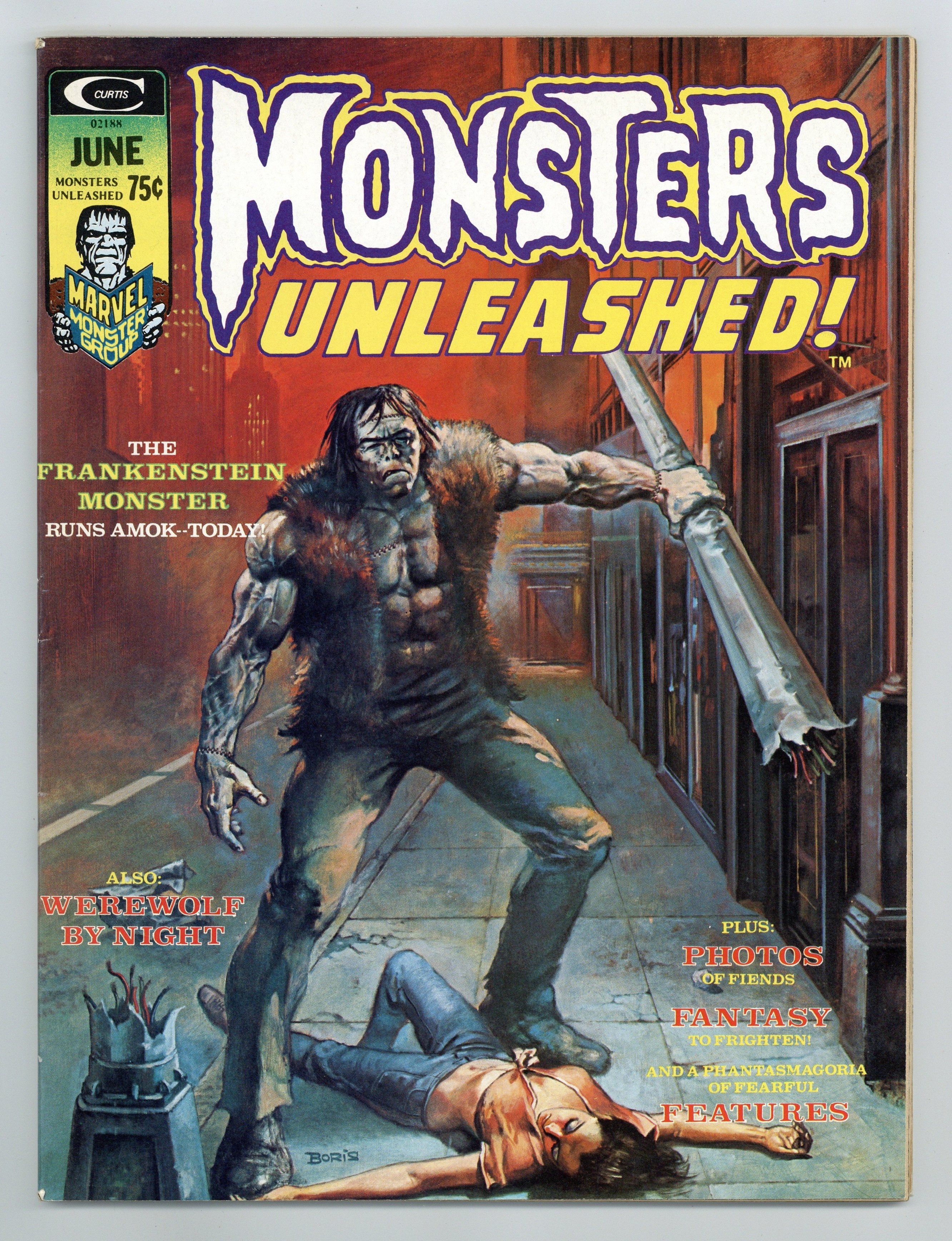 Starts Apr 20 Edited by Roy Thomas. Cover by Boris Vallejo. Always a Monster!, script by Doug Moench, art by Val Mayerik; The original brain of the Frankenstein Monster is returned to his body, while the brain of James is placed inside the animated corpse of Derek McDowell. The Strange Children!, art by Sam Kweskin. Darkflame!, script by Gerry Conway, art by Carlo Freixas. Panic By Moonlight starring Werewolf by Night, script by Gerry Conway, art by Mike Ploog. The Waters of Werewolves, script by Tony Isabella, art by Win Mortimer. 68 pgs., color. $0.75. Cover price $0.75. Grade: FN 6.0 explanation of grade Condition: Used (collectible)