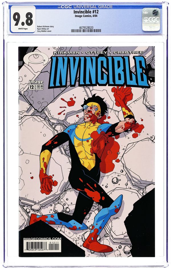 Written by ROBERT KIRKMAN Art by RYAN OTTLEY Cover by CORY WALKER FC 32 pgs. $2.95 Monthly ongoing series. CONCEPT: Mark Grayson is just like most everyone else his age, except that his father is the most powerful superhero on the planet. And now he's begun to inherit his father's powers. It all sounds okay at first, but how do you follow in your father's footsteps when you know you will never live up to his standards? THIS ISSUE: "Perfect Strangers," Conclusion?Mark's world comes crashing down around him. After the events of last issue, Mark is left wondering how he'll survive. You have front row seats as Mark comes face to face with the most deadly foe of his short- lived superhero career. It's all been leading up to this, and you do not want to miss this issue! Cover price $2.95. Grade: CGC 9.8 explanation of grade Condition: Used (collectible)
