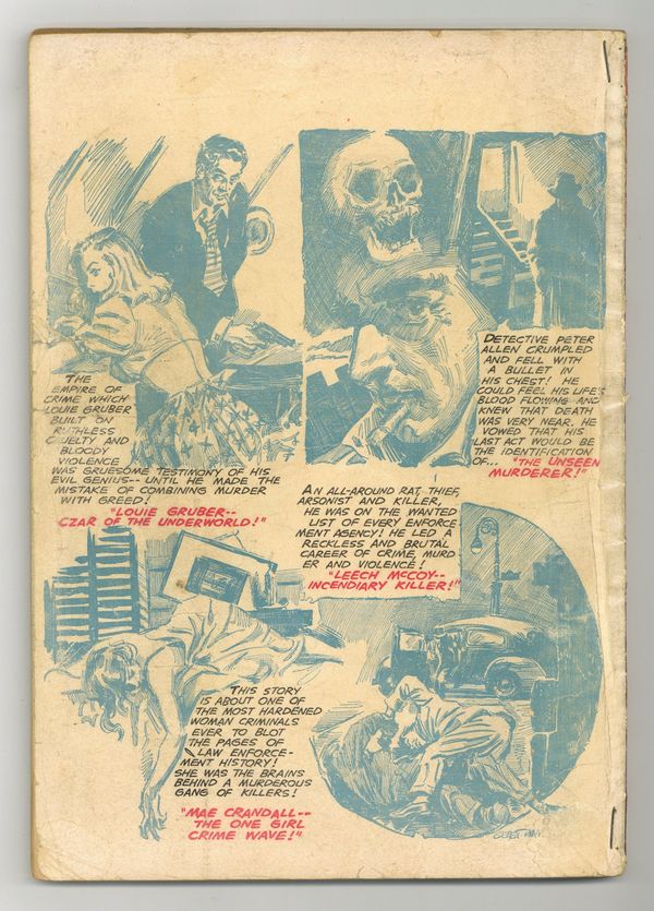 Starts Jul 4 Cover by Everett Raymond Kinstler. Art by Michael J. Becker, Gerald McCann, Goldfarb Baer, Tex Blaisdell, Sid Check, Joe Kubert, Mort Lawrence, and Howard Larsen. Reprints of Murderous Gangsters #3, Prison Break #3 and Police Lineup #3. Lurid pre-Code tales about mobsters, bank robbers and other bad guys and gals from the golden age of crime. A murdered detective sets out to ID his killer before he dies; Leech McCoy has a yen for arson and a name like a Dick Tracy villain; Redheaded Lina Foyle and her boyfriend go on a crime spree. Killer Bait; Blind Mans Bluff; Brothers in Crime; Jed Hawkins—Cold Blooded Killer; The Imperfect Crime; Nick Marek—Shakedown Racketeer; Killers on the Loose; Sonny Terhune Machine-Gun Madman; Lina Foyle Gunmoll; Clevelands Butcher of Death; Two-Dollar Murder; Death Comes Laughing; Killer at Large; Louie Gruber Czar of the Underworld; The Unseen Murderer; Death Danced the Samba; Mystery of the Headless Corpse; Leech McCoy the Incendiary Killer! 100 pages, Full Color. Cover price $0.25. Grade: GD- 1.8 explanation of grade Condition: Used (collectible)