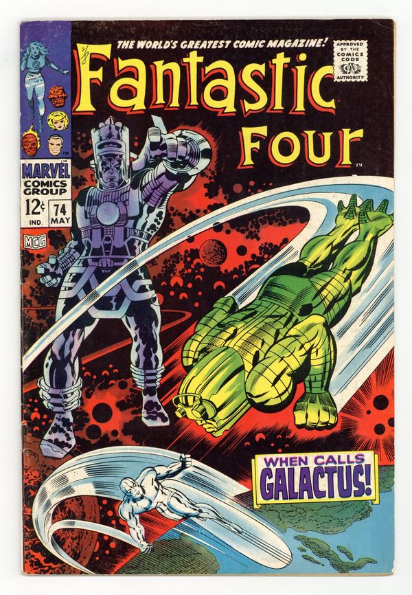 Cover pencils by Jack Kirby, inks by Joe Sinnott. The Silver Surfer, Galactus, and Crystal (of the Inhumans) guest star in When Calls Galactus, script by Stan Lee and Jack Kirby (co-plot), pencils by Jack Kirby, inks by Joe Sinnott; Galactus dispatches his Punisher to retrieve the Surfer who is protected by the FF. Letters to the editor from comics writers Don McGregor and Tony Isabella. Kirby/Sinnott cover. Reprinted in Marvel's Greatest Comics # 56. 36 pgs. Cover price $0.12. Grade: VG+ 4.5 explanation of grade Condition: Used (collectible)