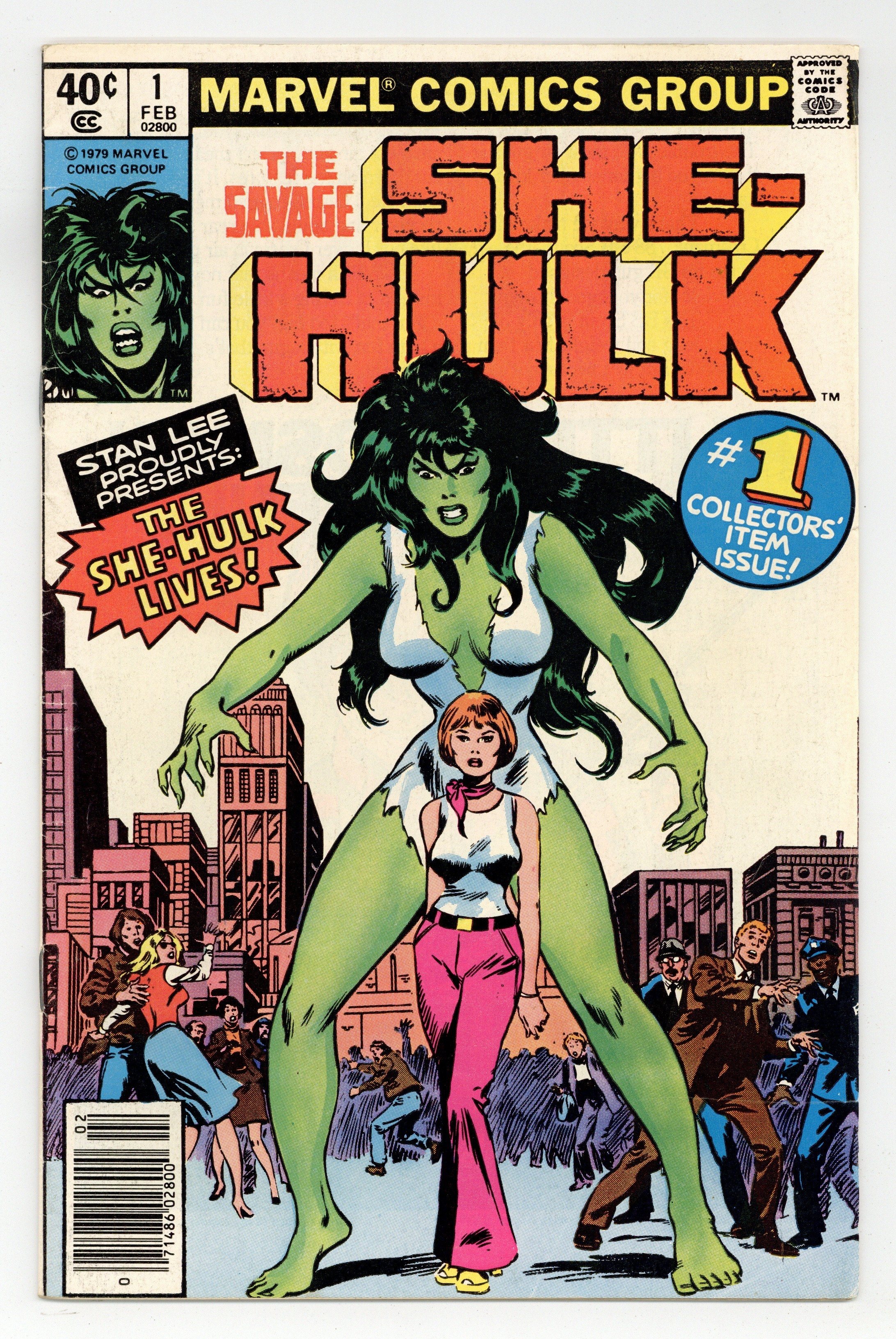 Starts May 4 Newsstand Edition. 1st appearance and origin of the She Hulk. "The She-Hulk Lives!" Guest-starring Bruce Banner. Story by Stan Lee. Art by John Buscema and Chic Stone. Jennifer Walters is on the verge of death after an attempted assassination, and the only thing that will save her life is a blood transfusion from her cousin, Bruce Banner...AKA the Incredible Hulk! His gamma-irradiated blood sparks a startling transformation in his cousin, and she will forevermore be known as the Savage She-Hulk! Cover price $0.40. Grade: VG- 3.5 explanation of grade Condition: Used (collectible)