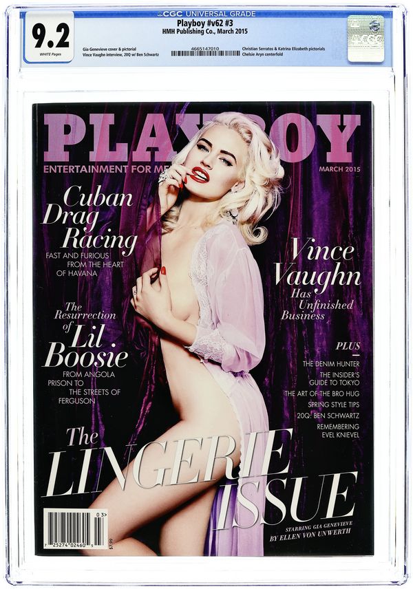 March 2015. Lingerie Issue Photo Cover. MATURE READERS. Grade: CGC 9.2 explanation of grade Condition: Used (collectible)