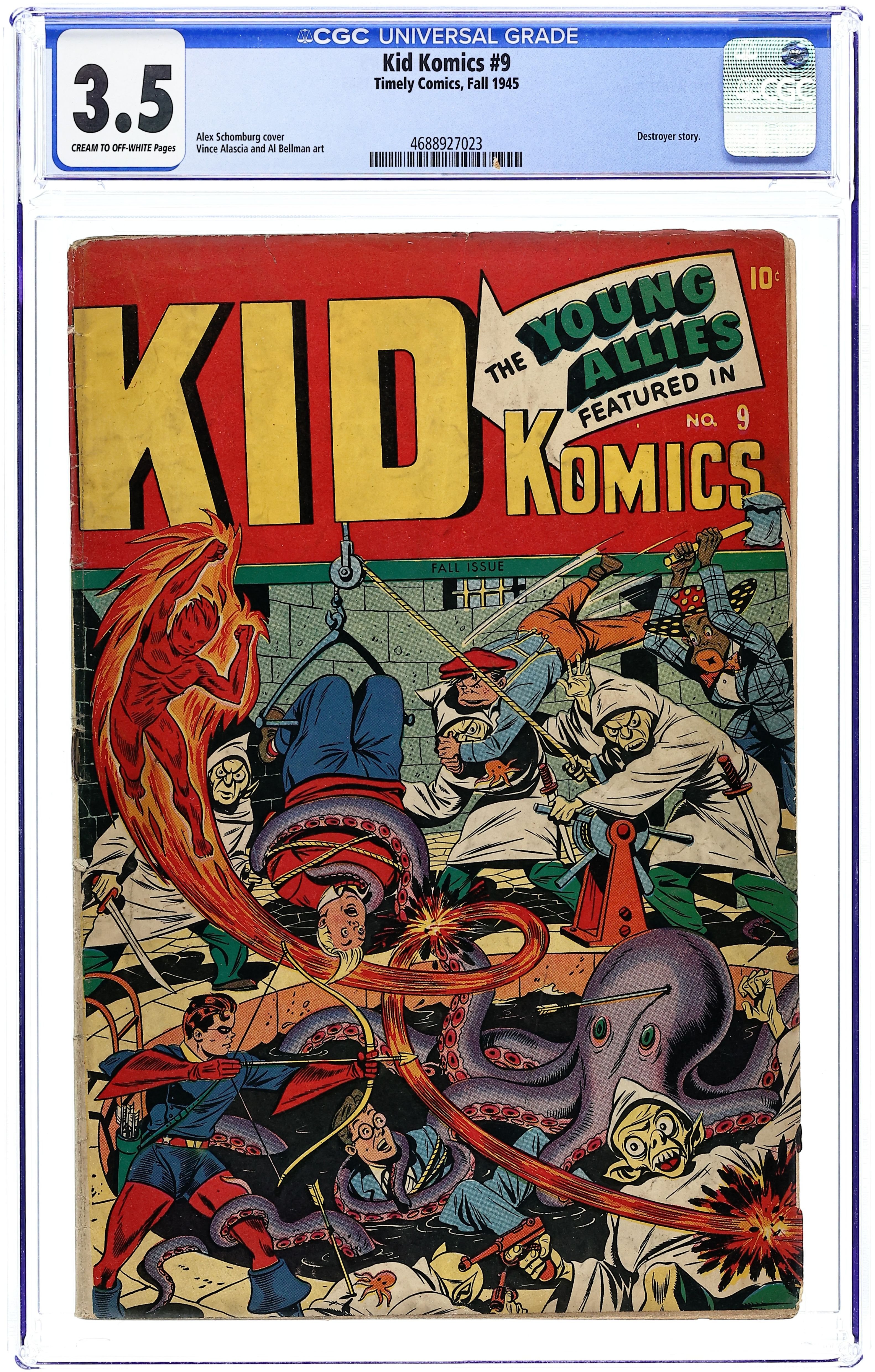 Schomburg cover. The Young Allies star in "The Corpse Came F.O.B." Jap Buster Johnson stars in "The Vanishing Island." The Destroyer in "The Robot Boomerang!" 36 pages. Cover price $0.10. Grade: CGC 3.5 explanation of grade Condition: Used (collectible)