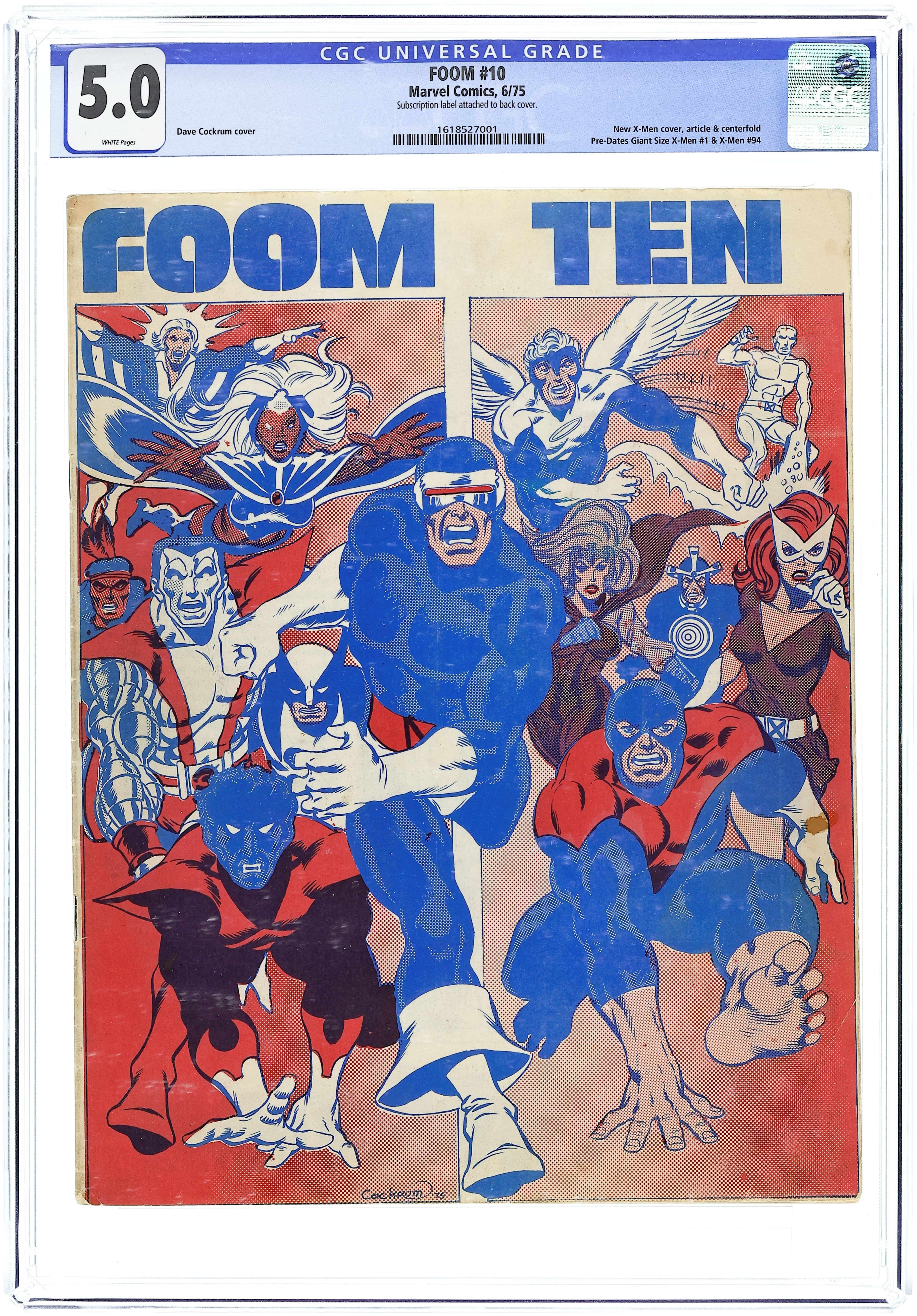 This issue has an article which features the All-New, All-Different X-Men that predates their first official appearance in Giant-Size X-Men #1. Illustrations by Jack Kirby (original design for the Sentinels), Dave Cockrum (Storm sketch), Don Maitz (centerspread pin-up of the original and new X-Men), Val Mayerik, and Bob Budainsky. Good quality photos of Stan Lee, Neal Adams, Herb Trimpe, Doug Moench, Marie Severin, Howard Chaykin, Roy Thomas, Marv Wolfman, Joe Sinnott, Len Wein, and Scott Edelman. Cockrum cover. Grade: CGC 5.0 explanation of grade Condition: Used (collectible)
