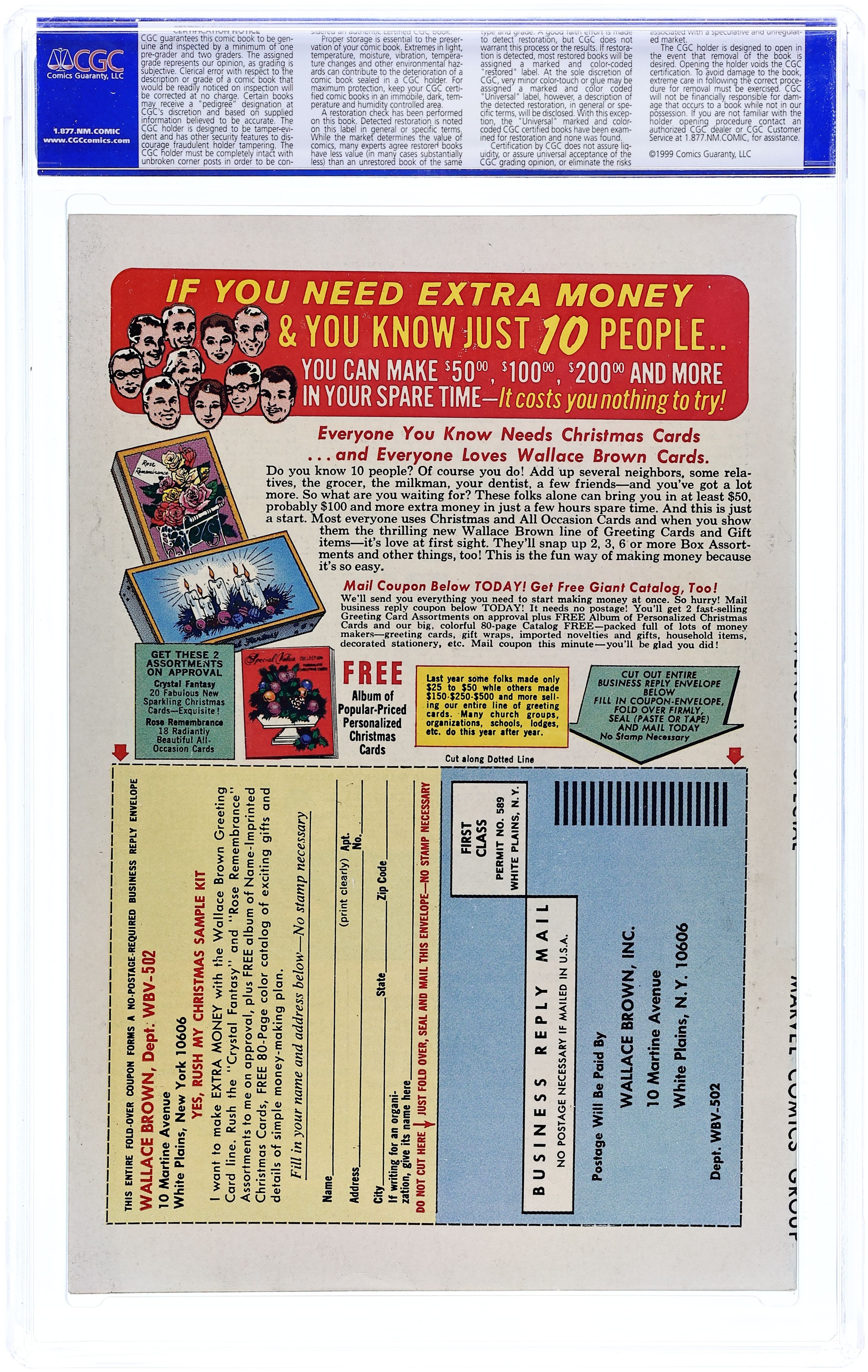 This annual features four reprint stories and a new cover by John Buscema and Frank Giacoia. First story reprinted from Avengers (1st series) 4: "Captain America Joins the Avengers!" Script by Stan Lee. Pencils by Jack Kirby. Inks by George Roussos. The first silver age appearance of Captain America! With inadvertent aid from the Sub-Mariner, the Avengers find the frozen body of Captain America drifting aimlessly in the North Sea! And at that very moment...the legend of the star-spangled avenger is born! Second story reprinted from Tales of Suspense 66: "The Fantastic Origin of the Red Skull" Script by Stan Lee. Pencils by Jack Kirby. Inks by Chic Stone. The Red Skull tells his origin to his star-spangled prisoner, Captain America. Third story reprinted from Tales of Suspense 67: "Lest Tyranny Triumph!" Script by Stan Lee. Pencils by Jack Kirby. Inks by Frank Ray (aka Frank Giacoia). Under the mental control of the skull, Captain America invades the Allied Headquarters in London! But his loyal partner, Bucky, will try to stop him from accidentally shooting the Allied Supreme Commander! Fourth story reprinted from Tales of Suspense 68: "The Sentinel and the Spy!" Script by Stan Lee. Pencils by Jack Kirby. Inks by Frank Ray. The shield-slinger and Bucky foil the Red Skull's plans...not once but twice! 68 pgs. Cover price $0.25. Grade: CGC 9.8 explanation of grade Condition: Used (collectible)