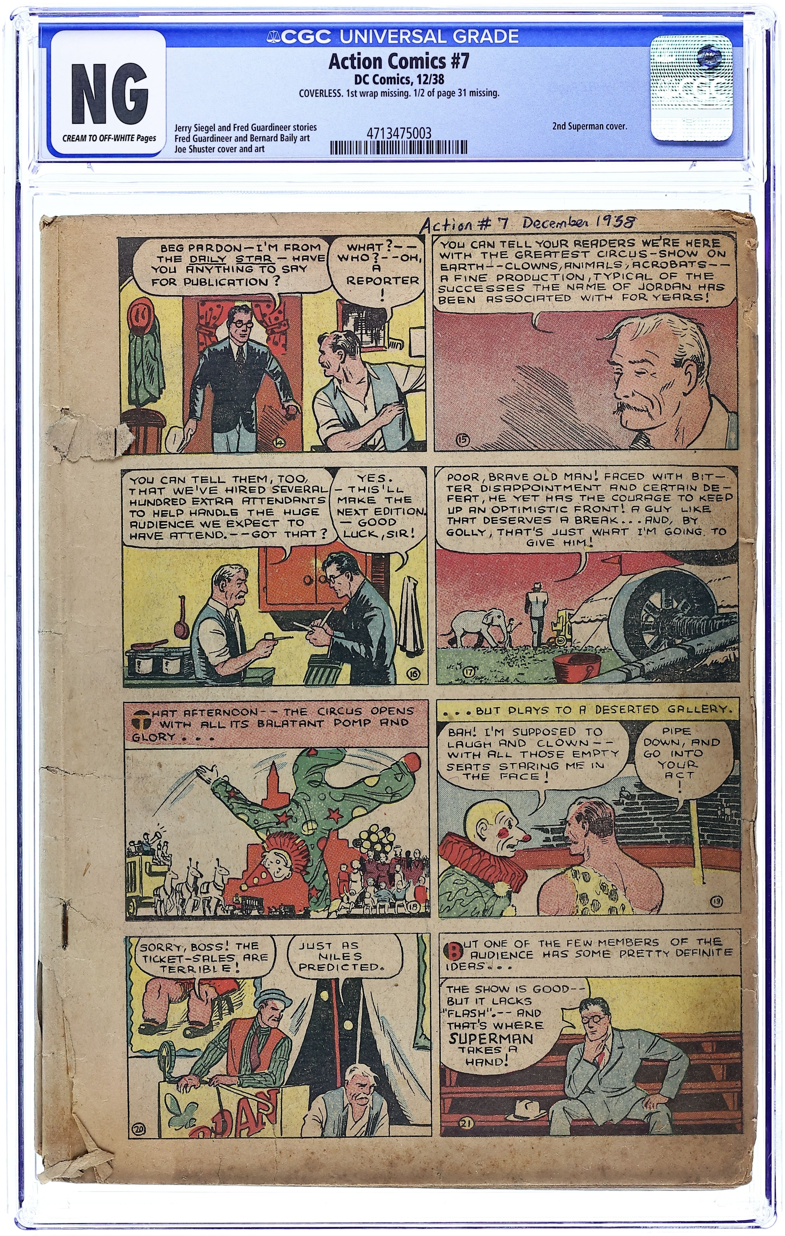 Action Comics (1938 DC) 7 CGC Coverless