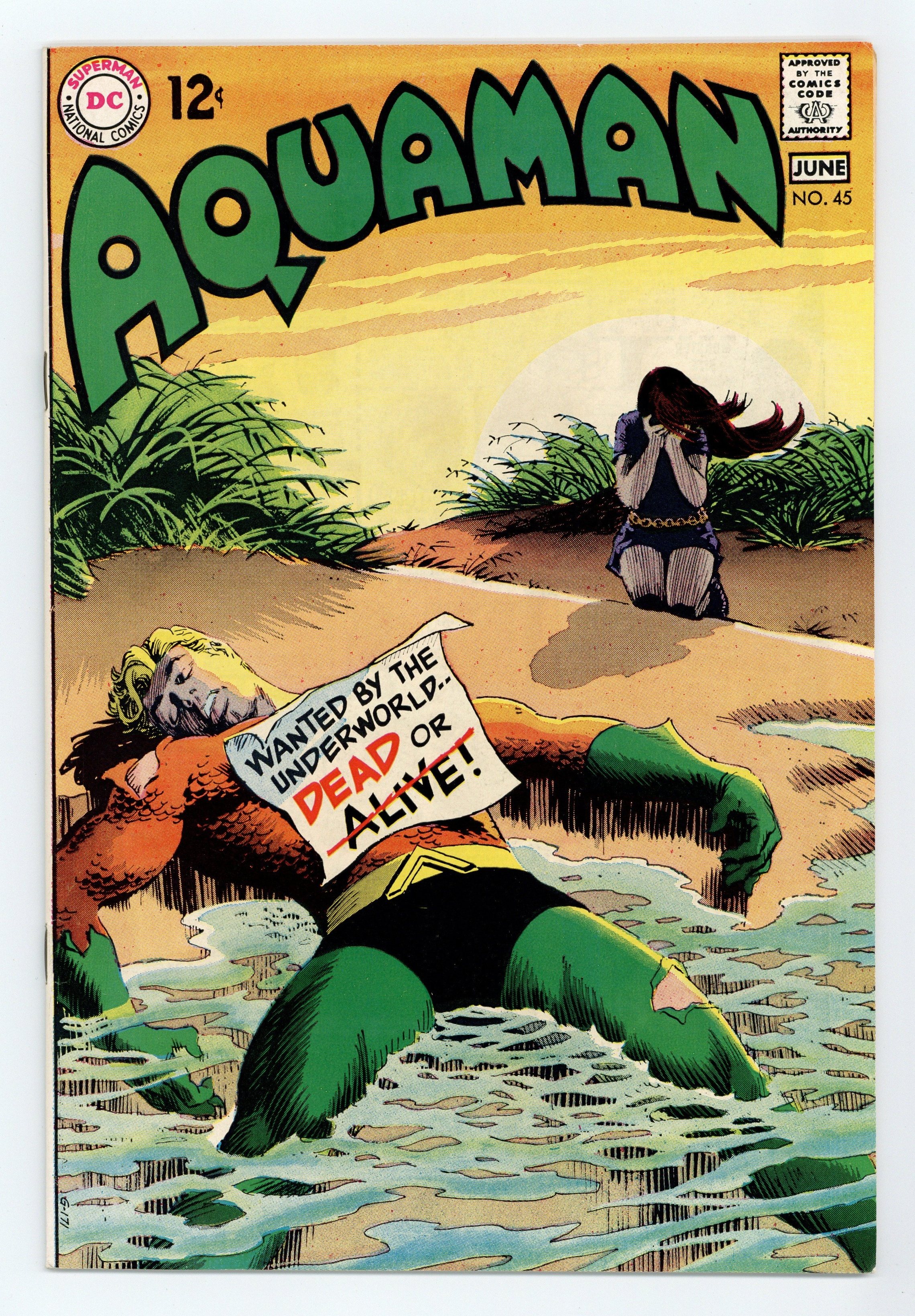 Starts May 18 Last 12c cover-priced issue. Cover art by Nick Cardy. Underworld Reward (part 2), script by Steve Skeates, art by Jim Aparo; Mera is found; Aqualad continues battling Bugala. Sea-Saws humor page by Henry Boltinoff. 36 pgs. $0.12. Cover price $0.12. Grade: FN+ 6.5 explanation of grade Condition: Used (collectible)