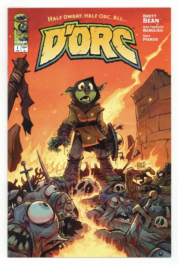 (W) Brett Bean (A) Brett Bean, Jean Francois Beaulieu (CA) Brett Bean Armed with nothing but a magical yet ambitiously violent shield, a lonely orphan stumbles headfirst into Sunderaines never-ending war between the Light and Dark. Elves vs. Orcs. Wizards vs. Common Sense. Dragons vs. Literally Everyone. And caught dead-center? D'ORC. With a wholly inconvenient doomsday prophecy, the half dwarf, half orc—all D'ORC—is fated to end the world. Soon, every human, elf, goblin, dwarf, Snargletooth, Necroid, Ice Giant, Trauma Llama, and at least three other unpronounceable magical creatures, will know his name and want him dead. There will also be a chicken. Join fan-favorite artist BRETT BEAN (I HATE FAIRYLAND, DUNGEON CRAWLER CARL THE CROCODILE), colorist JEAN-FRANÇOIS BEAULIEU (I HATE FAIRYLAND), and letterer NATE PIEKOS (MINOR THREATS) for a hilarious high-fantasy romp perfect for fans of CONAN, LORD OF THE RINGS, and of course, GERT's deadpan humor. 24 pages, full color, rated T+. Cover price $3.99. Grade: VF 8.0 explanation of grade Condition: Used (collectible) unless item is a new release
