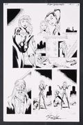 Notti, Nyce, and new pal Nastee are joined by a mysterious interloper after defeating a team of assassins. Signed by the artist. Pencil and ink on art board. 11" x 17".