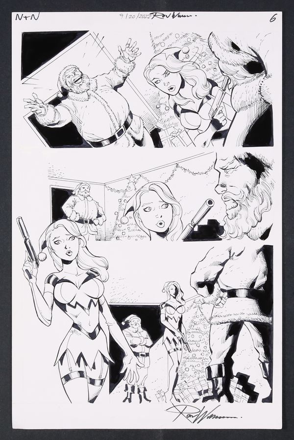 Nyce may find herself on the Naughty List as her mission to kill Santa gets a bit more interesting! Signed by the artist. Pencil and ink on art board. 11" x 17".