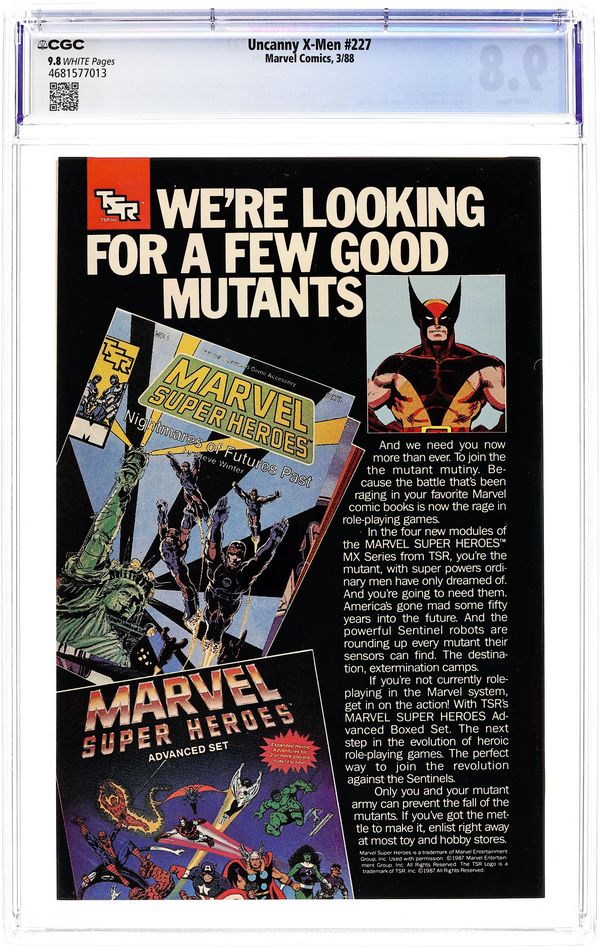 Tags: Fall of The Mutants (part 21), Marvel Legacy Numbering: Hulk (part 340), Hulk, Wolverine, X-Men$931.00- Paper: White