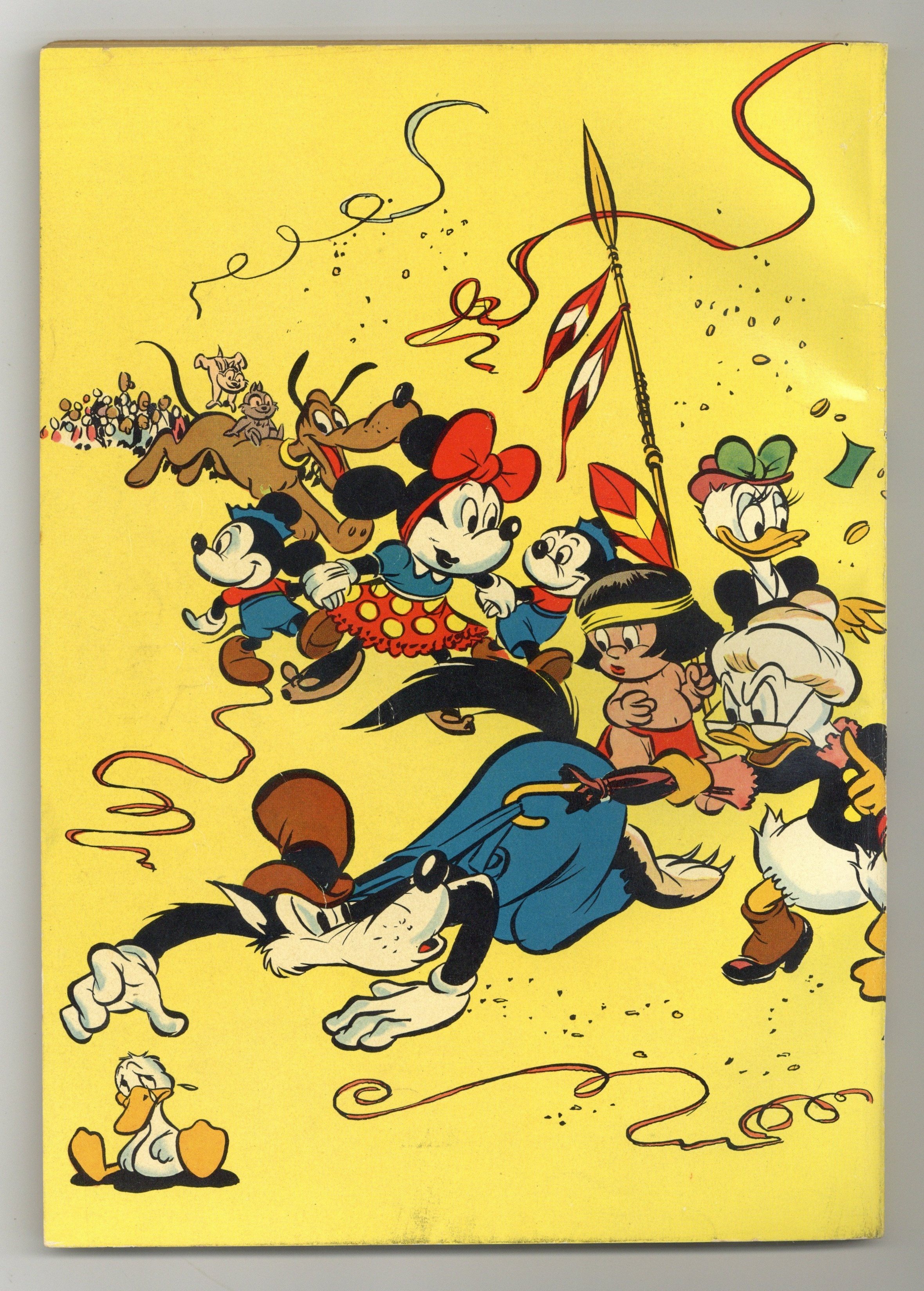 Starts Apr 20 No # on cover, yellow cover, Disney characters in marching band. #2, 1951, 25c. Giant size comic featuring Donald Duck in "Captures the Range Rustlers," Li'l Bad Wolf in "The Pygmy Pigs," Mickey Mouse in "Ram's Head Ramblers," and Chip ?N' Dale, the Ugly Duckling, Little Hiawatha, Grandma Duck, Guz & Jaq in untitled stories. Comic also has one-page gag strips and games and puzzles. Wraparound cover. Story and art credits: unknown. 112 Pages, Full Color. Cover price $0.25.