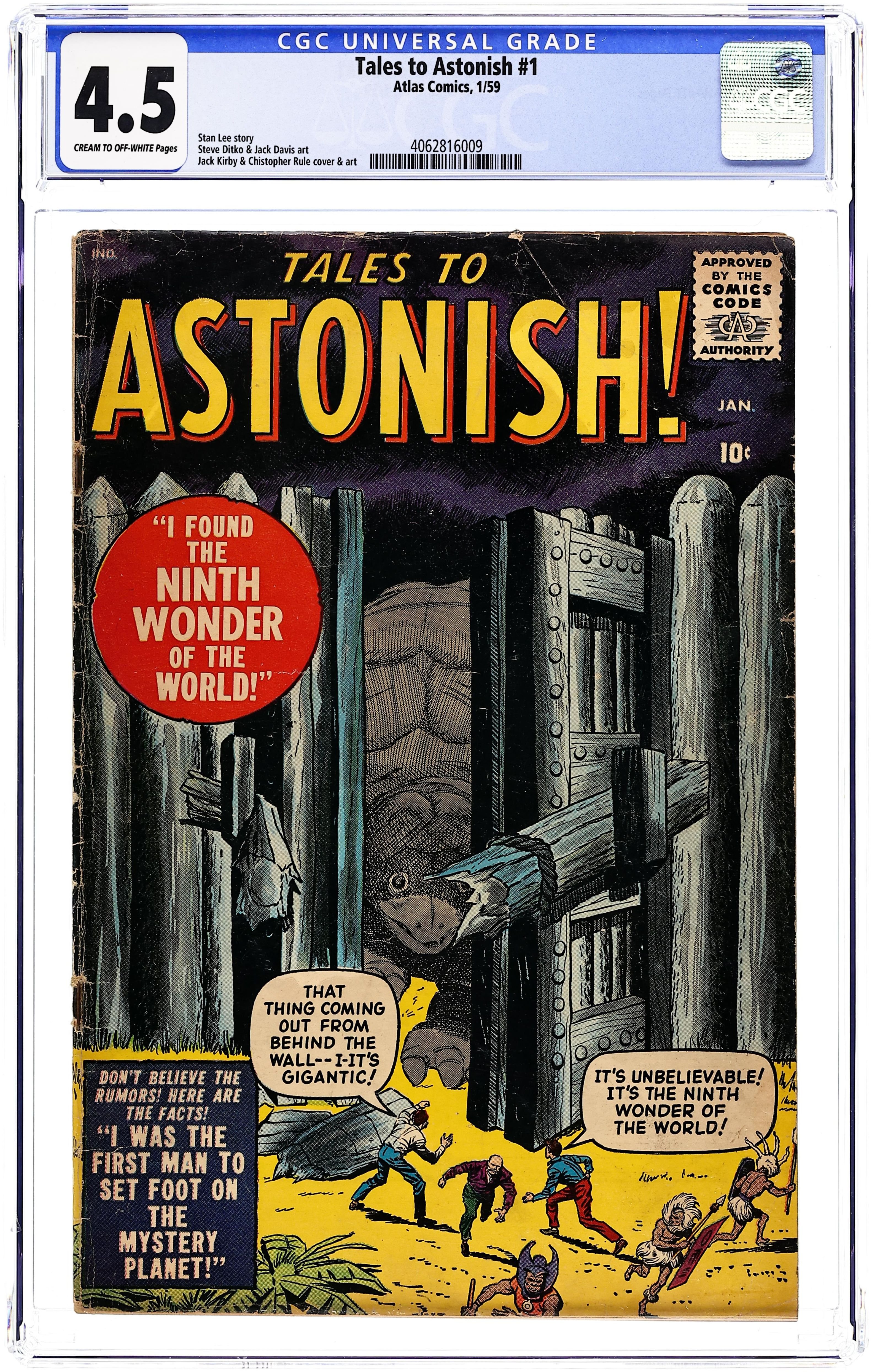 Cover by Jack Kirby and Christopher Rule. We Found the Ninth Wonder of the World!, art by Jack Kirby and Christopher Rule; An expedition in remote waters finds a missing scientist who has used serums to create giant turtles, one the size of a house, the other the size of an island. I Know the Secret of the Poltergeist!, art by Steve Ditko; An investigator works diligently to discover the logical explanations behind the odd occurrences at a couple's newly purchased home. The Heat's On text story, art by Don Heck. I Was the First Man to Set Foot on...the Mystery Planet!, art by Carl Burgos; A businessman bigoted against robots tries to make a deal to tap the resources of a planet rich in exploding pools of radioactive oil. I Foiled an Enemy Invasion!, art by Jack Davis. 36 pgs., full color. $0.10. Cover price $0.10.