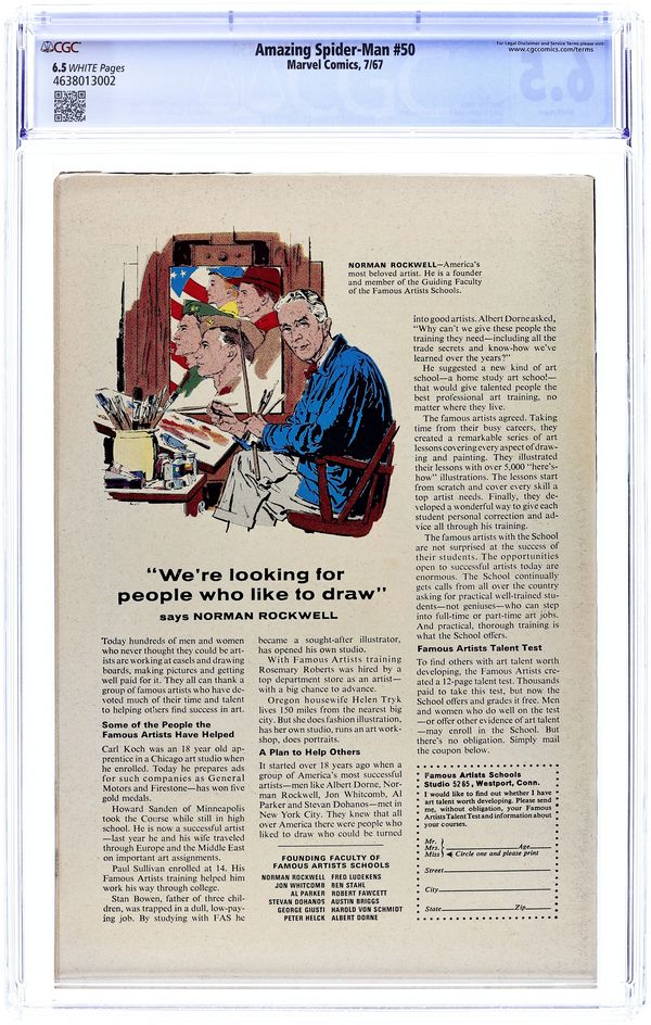 Tags: Marvel Legacy Numbering: Amazing Spider-Man (part 50), Spider-ManAmazing Spider-Man (1963 1st Series) 50 CGC 5.0 SS Stan Lee/Romita