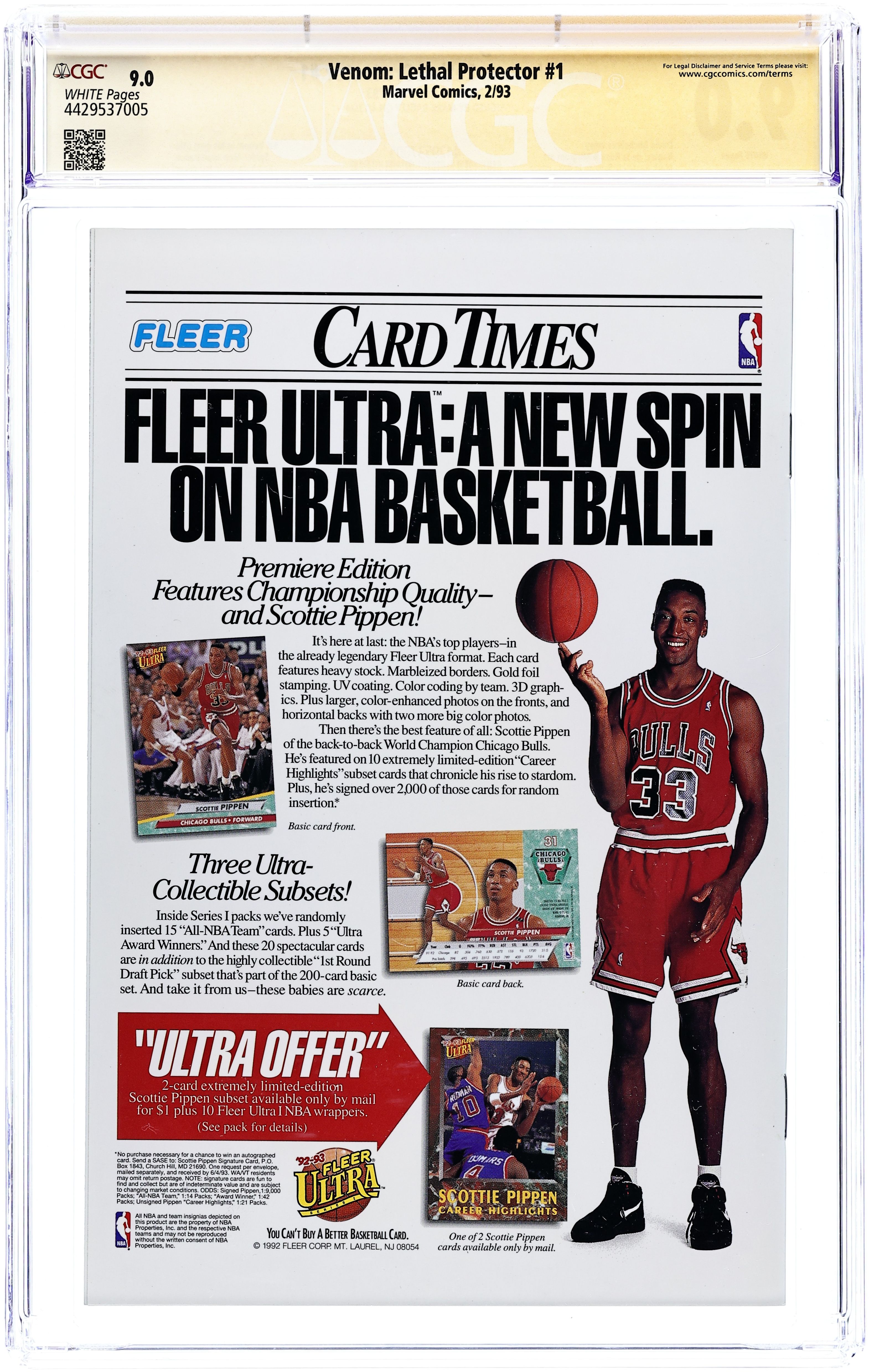 Direct Edition. Cover by Mark Bagley and Sam de la Rosa. Lethal Protector Part 2: War and Pieces, script by David Michelinie, pencils by Mark Bagley, inks by Al Milgrom and Sam de la Rosa; Venom is rejected by the underground dwellers he helped out; Spidey goes to Eddie's father for answers about his son; The Jury comes after Venom for killing its leader's son. 36 pgs., full color. $2.95. Cover price $2.95.