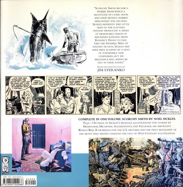 1st printing. By Noel Sickles. Biographical text by Bruce Canwell. Noel Sickles drew comics for three brief years, yet his groundbreaking work on the 1930s aviation adventure series Scorchy Smith is a milestone in the history of newspaper comic strips. Over the past 70 years, however, readers have seen only occasional excerpts of this seminal work. Now IDW's Library of American Comics presents Scorchy Smith and The Art of Noel Sickles, a comprehensive, oversized 352-page volume that collects, for the first time, every Sickles Scorchy strip, from December 1933 through November 1936. It also features extensive DVD-style extras examining Sickles's life and the decades-long influence of his work, while also showcasing the breadth of his career as one of America's foremost magazine illustrators. Pete Hamill observed, "Sickles was the first comics artist to use the brush boldly, in an impressionistic way" as he pioneered the use of chiaroscuro and Craftint shading in comics. Together with his studio partner, Milton Caniff of Terry and the Pirates fame, Sickles created a method of dramatic comics storytelling and illustration that influenced generations of artists who followed. Longtime Spider-Man artist John Romita noted that during the 1950s, "the whole industry was copying from photostats of the Scorchy Smith dailies by Noel Sickles." Having blazed a trail through the comics world, Sickles left the medium in favor of a 40-year career as one of America's most successful magazine illustrators. A regular at Life magazine, his work also appeared in Look, Reader's Digest, National Geographic, and the Saturday Evening Post. Sickles won the National Cartoonist Society's Advertising and Illustration Award in both 1960 and 1962. He eventually settled in Tucson, Arizona and turned to painting, winning further acclaim for his Western canvases. Edited by Dean Mullaney. Designed by Mullaney and Dale Crain. Hardcover, 11-in. x 11-in., 394 pages, PC/PB&W. Cover price $49.99.