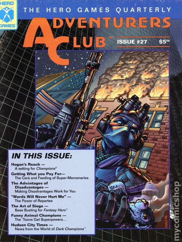The Hero Games Quarterly. In this issue: Hogan's Reach - A Setting for Champions; Getting What You Pay For - The Care and Feeding of Super-Mercenaries; The Advantages of Disadvantages - Making Disadvantages Work for You; 'Words Will Never Hurt Me' - The Power of Repartee; The Art of Siege - Base Busting for Fantasy Hero; Funny Animal Champions - The 'Toons Get Superpowers; Hudson City Times - News from the World of Dark Champions. Cover price $5.00.
