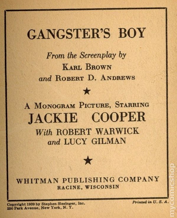 Jackie Cooper in Gangster's Boy (1939 Whitman BLB) comic books