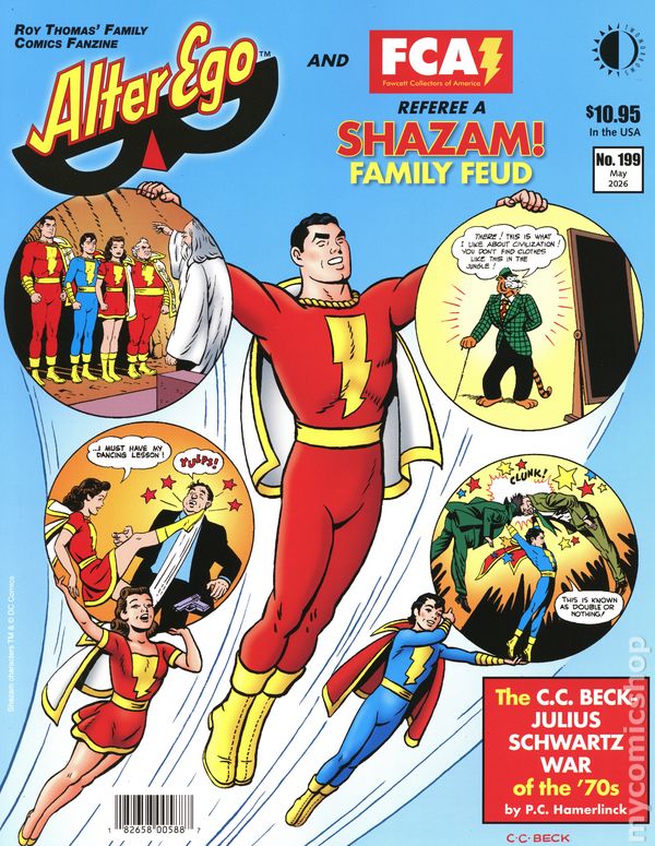 (W) Roy Thomas (A) C.C. Beck (CA) C.C. Beck P.C. HAMERLINCK reveals the secret—often bitter—early-1970s combat by correspondence between SHAZAM! artist (and Captain Marvel co-creator) C.C. BECK and DC editor JULIUS SCHWARTZ! Itll take more than one magic word to avoid a head-on collision between these two titanic talents! Plus, more FCA (Fawcett Collectors of America), MICHAEL T. GILBERT in Mr. Monsters Comic Crypt, and more! With an unused SHAZAM cover by C.C. BECK! Edited by ROY THOMAS. 80 pages, not rated, full color Cover price $10.95.