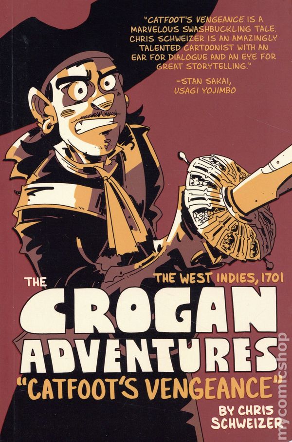 2nd and later printings. Story and art by Chris Schweizer. Chris Schweizer's award-winning historical adventure series returns in this new FULL COLOR edition of CROGAN'S VENGEANCE. When "Catfoot" Crogan becomes the new favorite of an infamous pirate captain whose crew he was forced to join, he incurs the wrath of the murderous first mate D'or. Can Catfoot keep his new crewmates safe when D'or hatches a scheme that will bring the full might of every navy in the West Indies down on their heads? Softcover, 6-in. x 9-in., 200 pages, full color. Cover price $17.99.