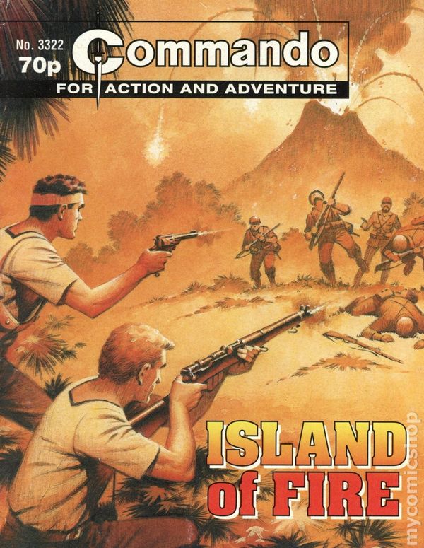 Weekly British War comics digest. "Island of Fire" Softcover, 5 1/2-in. x 6 1/2-in., 68 pages, B/W.