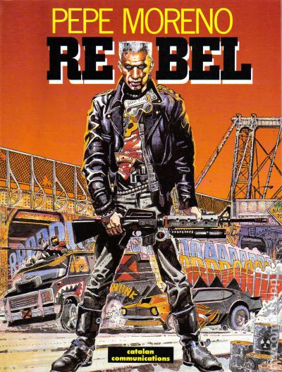 1st printing. Story by Pepe Moreno, Robb Hingley, Pete Ciccone, and Kenny Sylvester. Art and cover by Pepe Moreno. A post-apocalyptic adventure in the tradition of Mad Max and Escape from New York. In 2002, after a second American civil war, New York City is a no-mans land plagued by gangs and ruled by a fascist government. Crossing this hellscape is Rebel, battling outcasts, misfits, and terrifying forces like the Sanitation Police. In an odd coincidence, the story has the World Trade Center being destroyed in 2002; the comic was created in 1986. Softcover, 8 1/2-in. x 11-in., 76 pages, Full Color. Mature readers. Cover price $10.95.