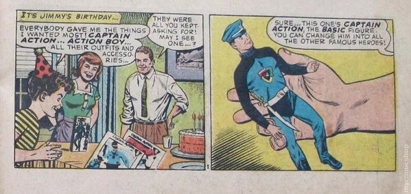 Ideal Toy Company Giveaway. (1st appearance of Captain Action). 18 pages. Brief appearances by Batman, Robin, Superman, Captain America, Spider-Man, the Lone Ranger, Tonto, the Phantom, the Green Hornet, Aquaman, and Steve Canyon.