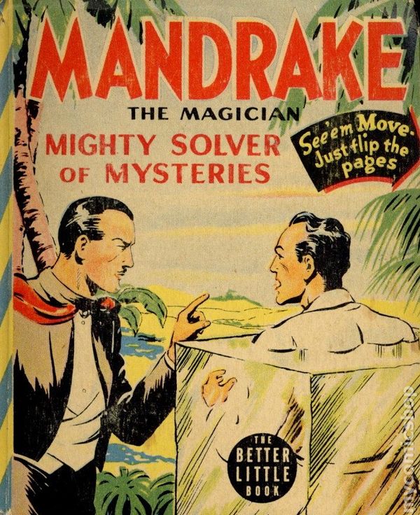 Mandrake the Magician Mighty Solver of Mysteries (1941 Whitman BLB) #1454, Lee Falk & Phil Davis, flip pictures. 3.5" x 4.5", 432 pages, B&W.