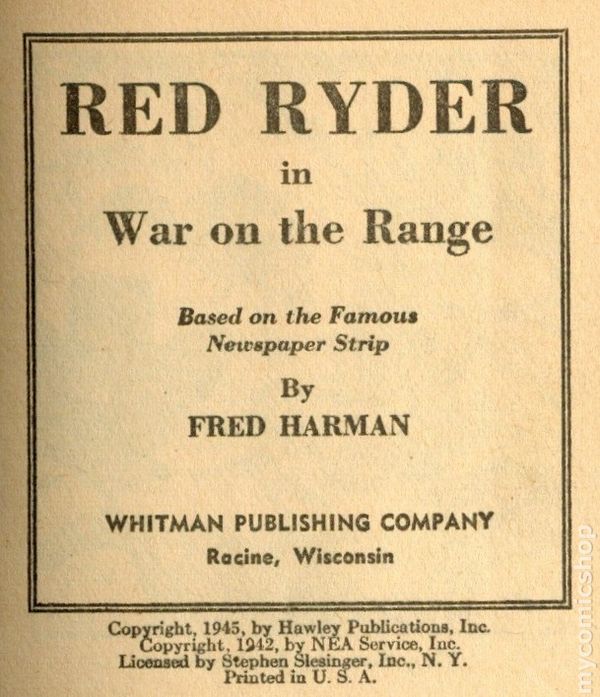 Red Ryder in War on the Range (1945 Whitman BLB) #1473, Fred Harman. 3.5" x 4.5", 352 pages, B&W.